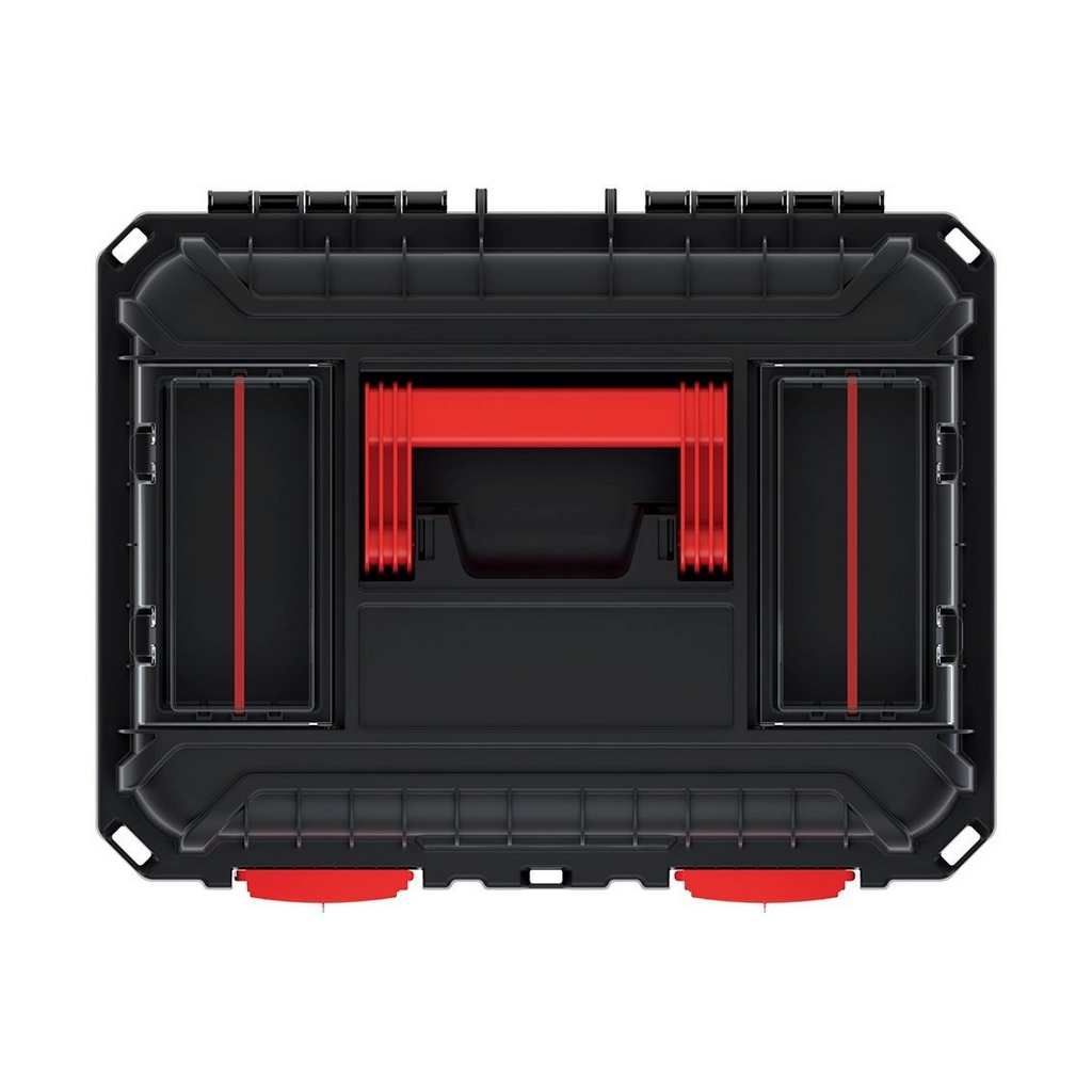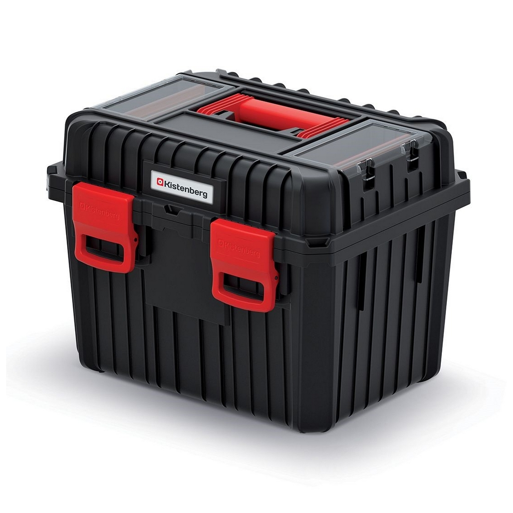 Na tento pevný kufor na náradie sa môžete spoľahnúť i v náročnejších podmienkach. Konštrukcia je z tvrdeného plastu a je rebrovaná, čo schránke prepožičiava vysokú mechanickú odolnosť a nosnosť až 25 kg.