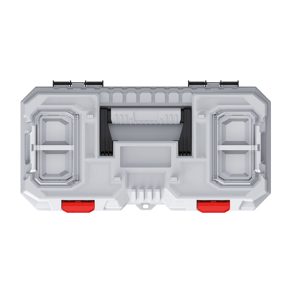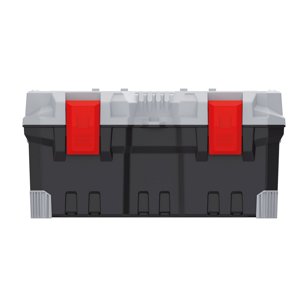 Tento kufor na náradie dobre poslúži každému majstrovi alebo údržbárovi. Celá konštrukcia je z tvrdeného plastu, čo schránka prepožičiava mechanickú odolnosť a nosnosť až 15 kg.