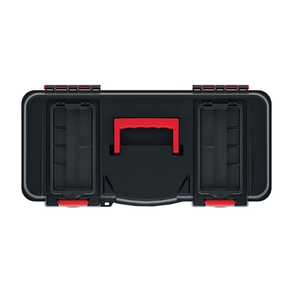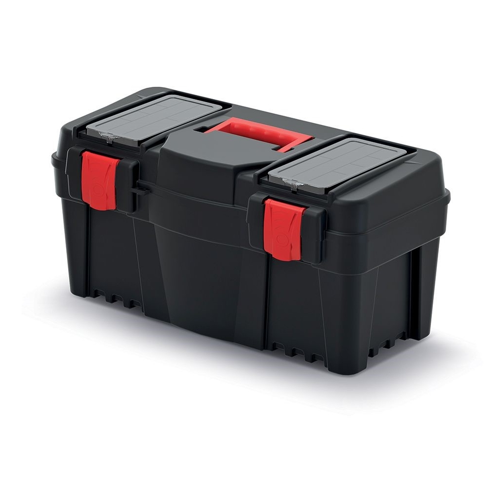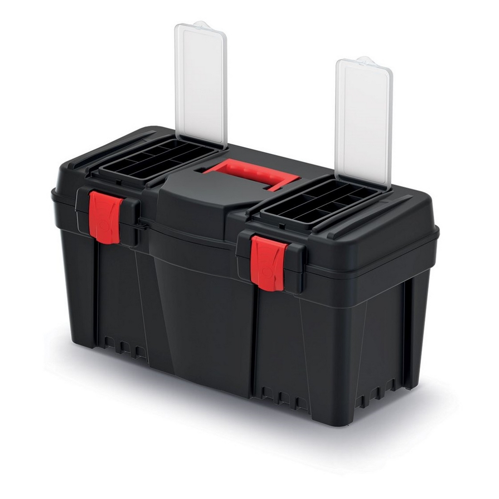 Tento jednoduchý kufor na náradie dobre poslúži každému kutilovi alebo údržbárovi. Celá konštrukcia je z tvrdeného plastu, čo schránke prepožičiava mechanickú odolnosť a nosnosť až 19 kg.