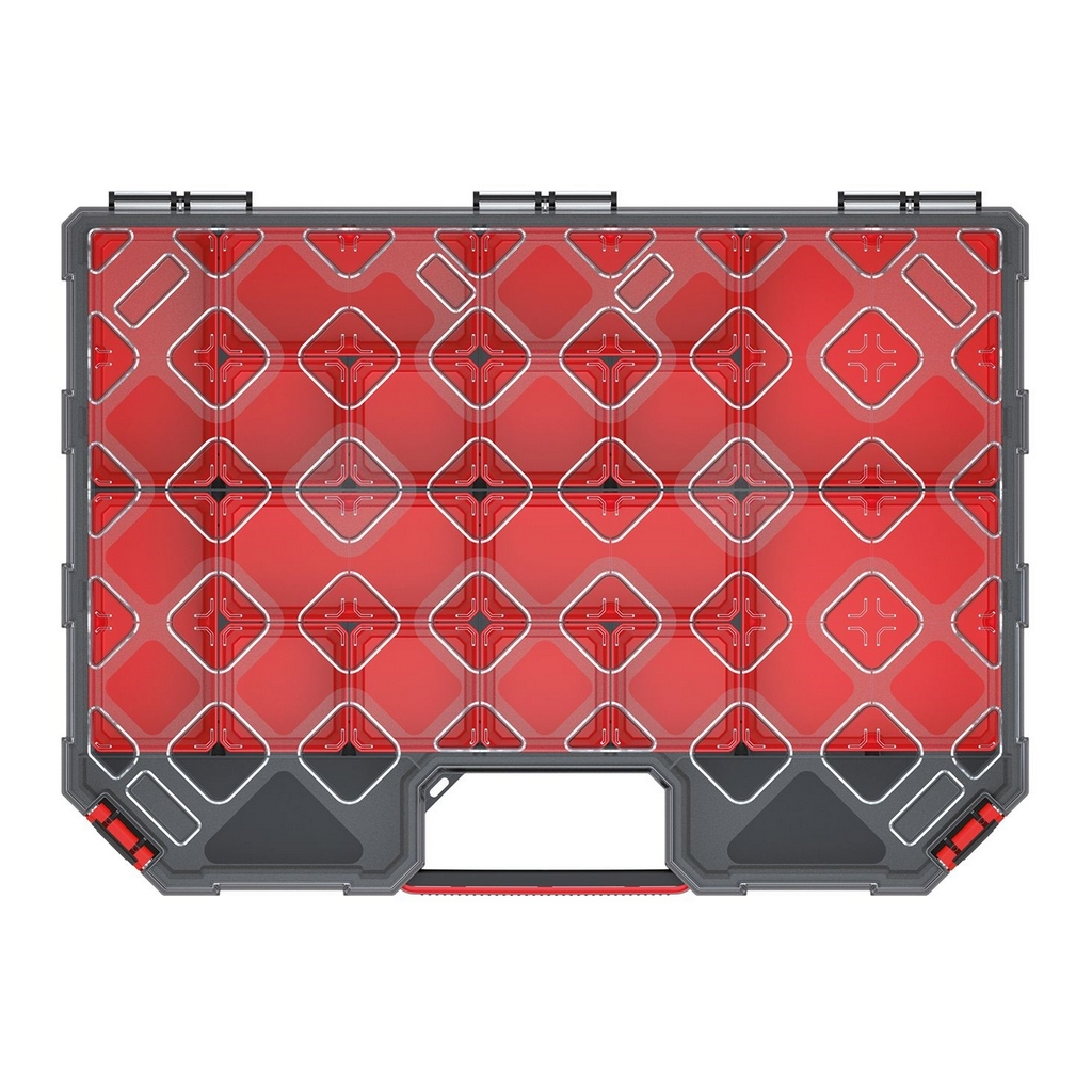 Organizéry predstavujú praktický spôsob, ako si udržať poriadok v drobnejšom náčiní a súčiastkach a zároveň ich mať vždy po ruke. Tento model je vybavený krabičkami, pomocou ktorých si úložný priestor prispôsobíte presne na mieru. Priehľadné veko z odolného polykarbonátu vám uľahčí hľadanie toho správneho dielu aj bez nutnosti otvorenia.