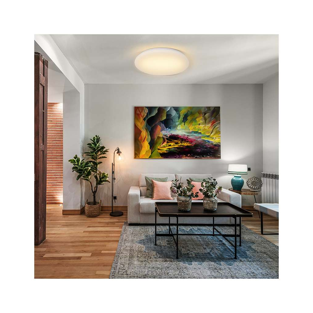 Jeho kompaktné rozmery s priemerom 26 cm a výškou 6 cm umožňujú jednoduchú a nenápadnú inštaláciu na strop, prispôsobí sa tak rôznym typom miestnosti ako sú obývacie izby, chodby alebo spálne. Stolné svetlo je navrhnuté s ohľadom na efektívnosť a dlhú životnosť.