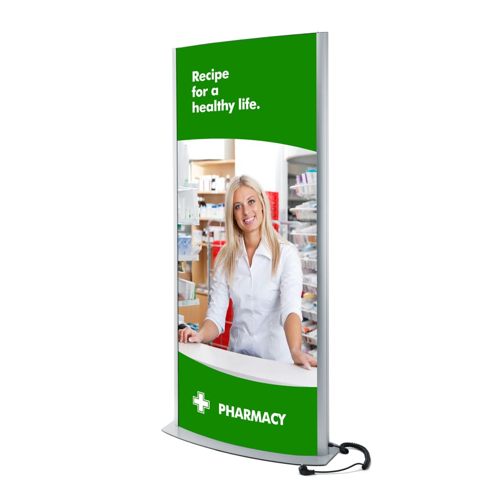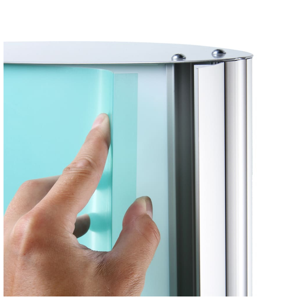 Svetelný totem ACTIVE s rozmermi 70 x 200 cm je skvelým riešením pre prezentáciu reklamných oznámení, a to predovšetkým v interiéroch. Tento obojstranný moderný panel je vyrobený z kvalitného hliníka je vybavený LED trubicami. Všetok obsah tak bude podsvietený a aj vďaka zaoblenému tvaru sa určite stane neprehliadnuteľným. Jednoduchosť svetelného totemu spočíva v zaklapávacom systéme, ktorý urýchľuje výmenu tlačovín, pretože prezentovaný obsah stačí len pohodlne vložiť.