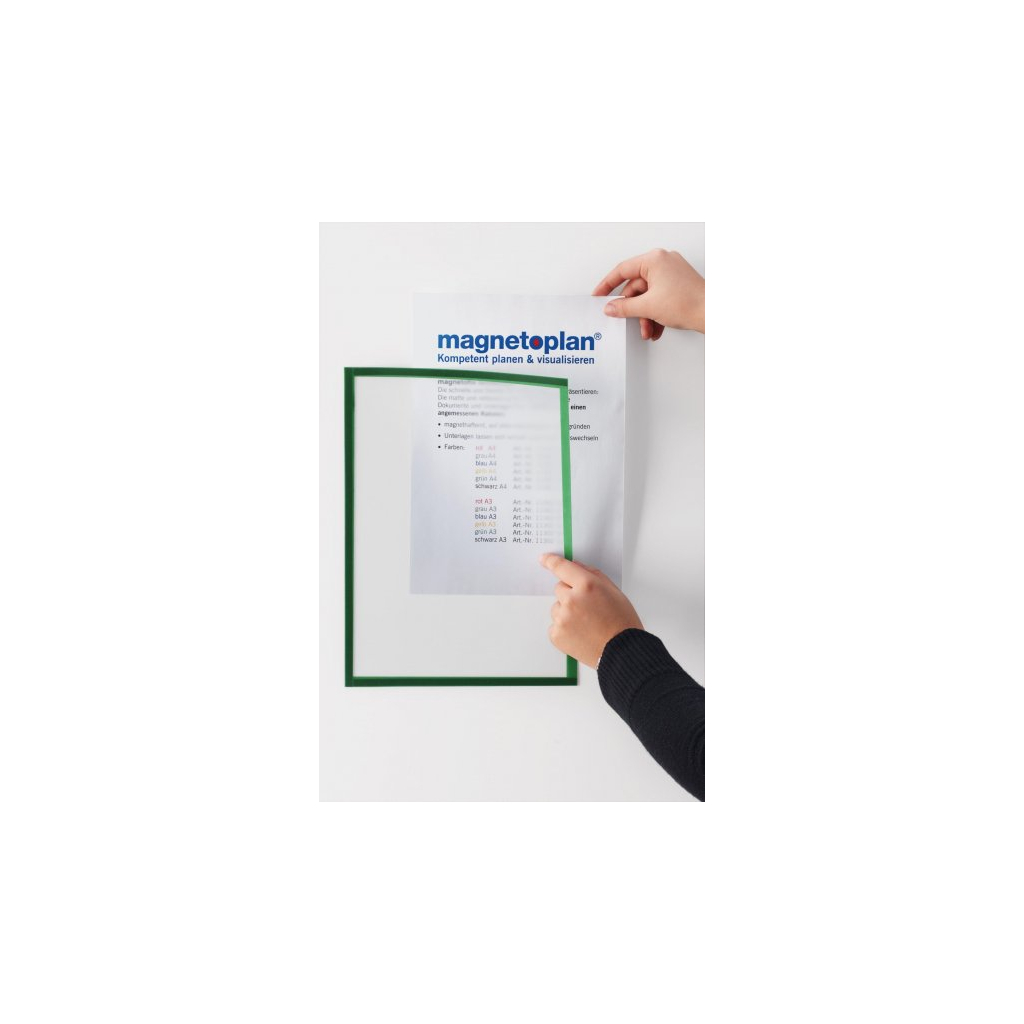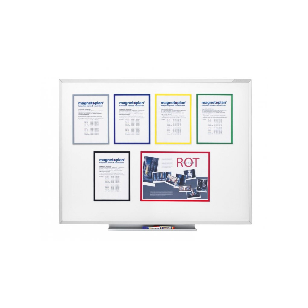 Magnetický rámček Magnetofix je ideálnym prvkom na uchytenie papiera vo formáte A4. Farebný rámček zaistí zvýraznenie vášho dokumentu na tabuli či flipcharte, takže ho nikto neprehliadne. Šírka rámčeka je 9 mm a dodávame ho v 4 farebných prevedeniach. V čiernej, modrej, červenej a sivej farbe.