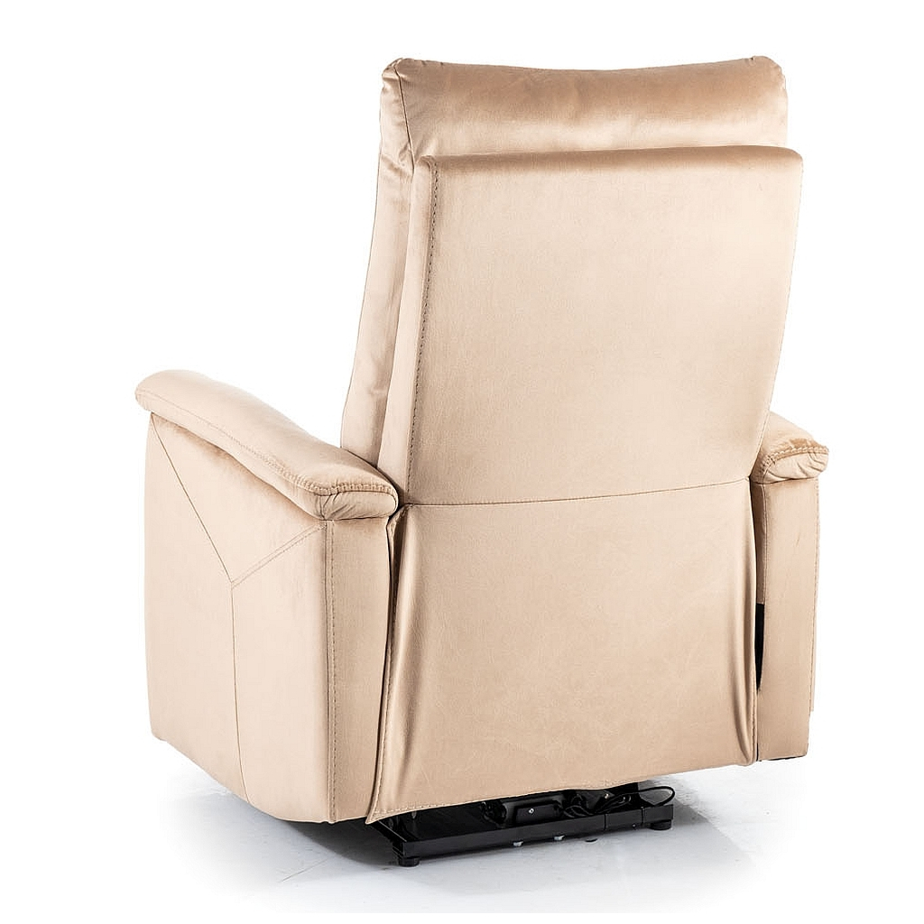 Na sadnutie láka bohaté polstrovanie a príjemná zamatová látka, ktorou je potiahnutá celá konštrukcia kresla. Tá je kovová. Kreslo môžete využiť taktiež k odpočinku poležiačky – elektrickým ovládačom naklopíte operadlo chrbta a nôh až do vodorovnej polohy.