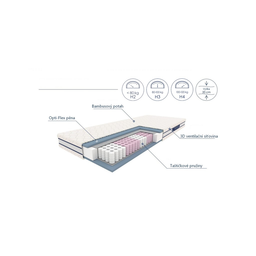 Poťah z bambusových vlákien, prešívaný vatou, obsahuje 3D ventilačnú sieťovinu pre lepšie odvetrávanie. Odvádzanie vlhkosti tak obmedzuje množenie roztočov a zaručuje ešte zdravší a pohodlnejší spánok.
