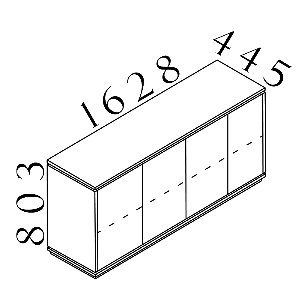 Nízka skriňa Creator obsahuje 1 policu, ktorá pri rovnomernom zaťažení disponuje nosnosťou až 30 kg. Korpus aj dosky skríň majú hrúbku 18 mm.