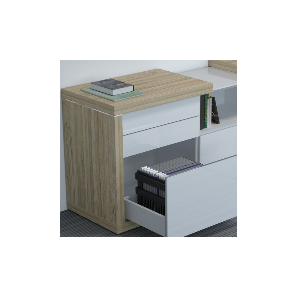 Dvere v spodnej časti a 4 zásuvky sa otvárajú systémom Push-To-Open, teda otváranie pomocou ľahkého zatlačenia. Vrchná časť skrine je otvorená, takže do nej môžete umiestniť veci, ku ktorým chcete mať rýchly prístup.