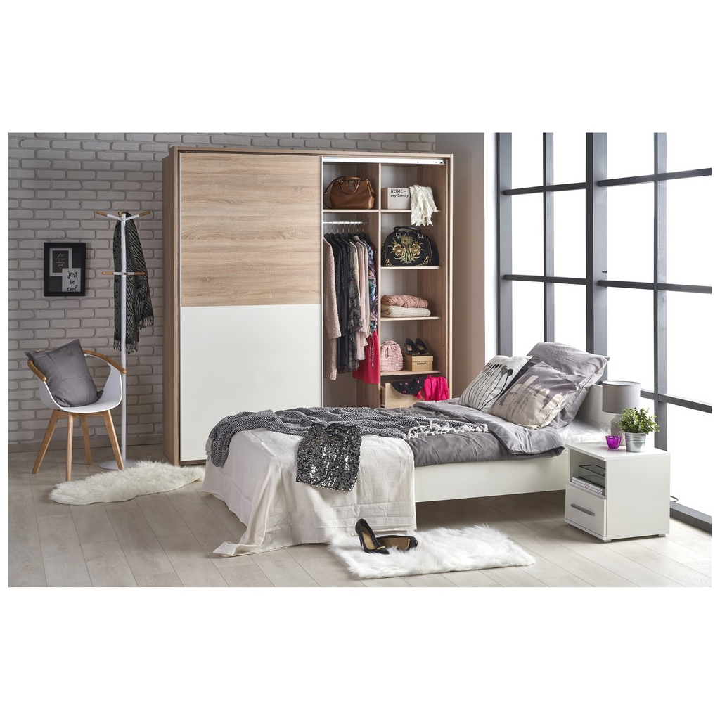 Jeho konštrukcia je vyrobená z laminovaných dosiek opatrených ABS hranou. Dodávame ho v 3 farebných prevedeniach – v čisto bielom lesku, dubu sonoma a v kombinácii bieleho lesku s dubom sonoma.
