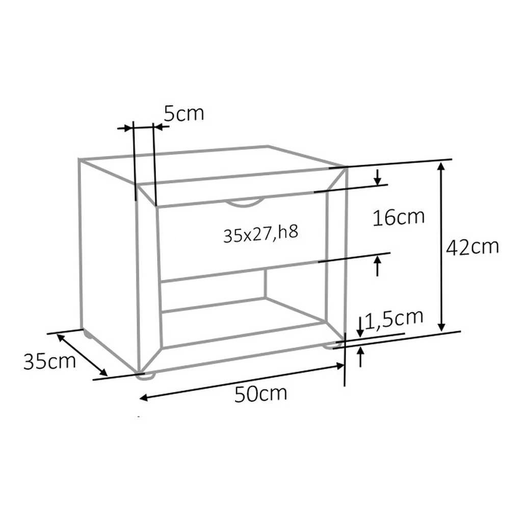 Nočný stolík Mullido kombinuje funkčnosť s estetickým dizajnom a je ideálnou voľbou pre tých, ktorí hľadajú kvalitný a štýlový nábytok do spálne s dostatkom úložného priestoru. Doprajte si praktický a zároveň pohodlný spoločník pri vašom nočnom odpočinku.
