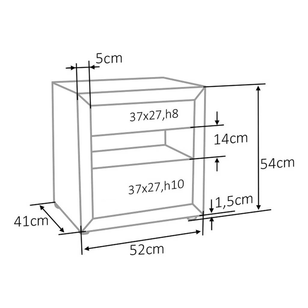 Jeho kompaktné rozmery zaručujú, že sa zmestí aj do menších priestorov, pričom poskytuje dostatok miesta na odkladanie všetkých nevyhnutných vecí pri posteli. S hmotnosťou 14,25 kg je stabilný, no stále ľahko premiestniteľný podľa vašich potrieb.