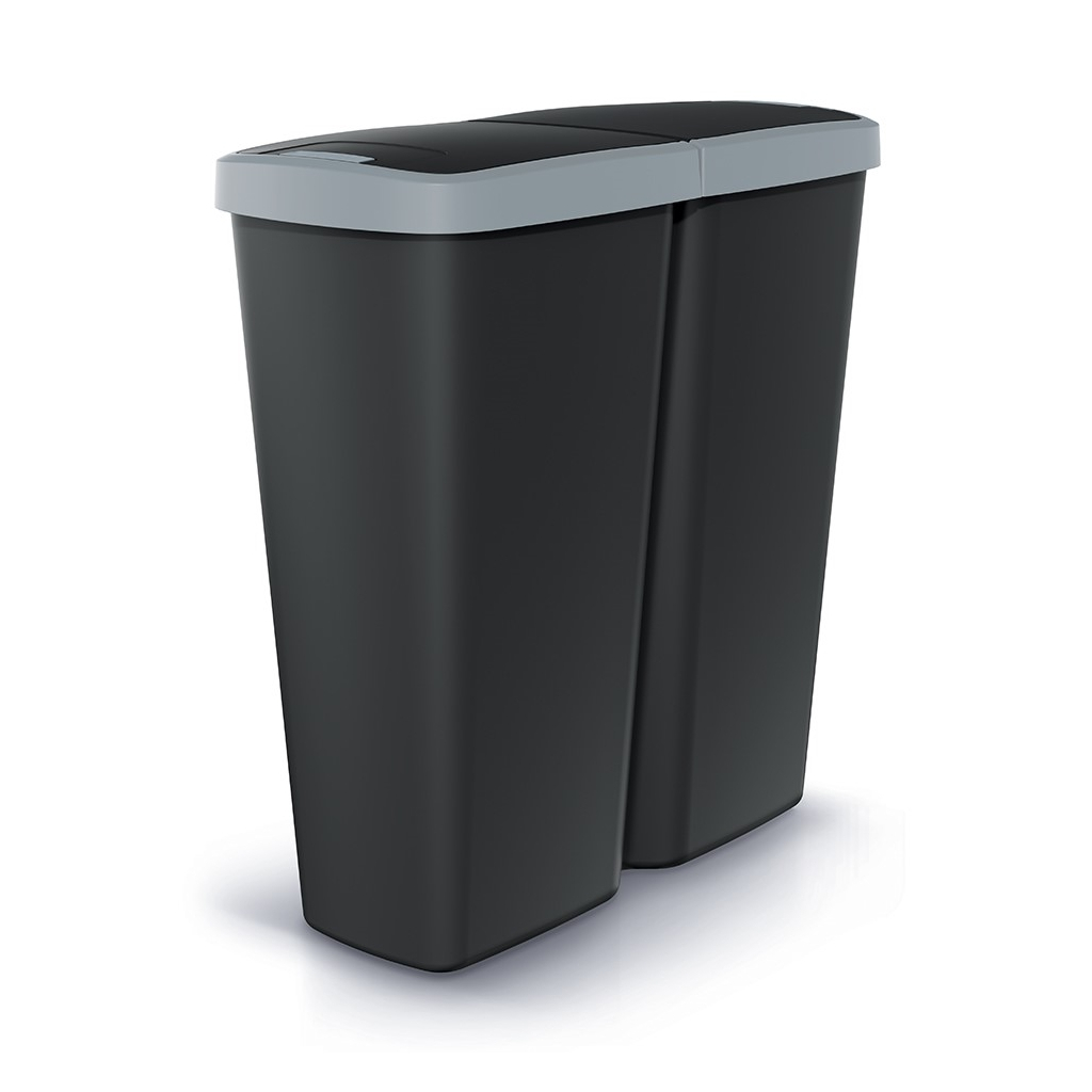Odpadkový kôš DUO čierny, 50 l, sivá / čierna