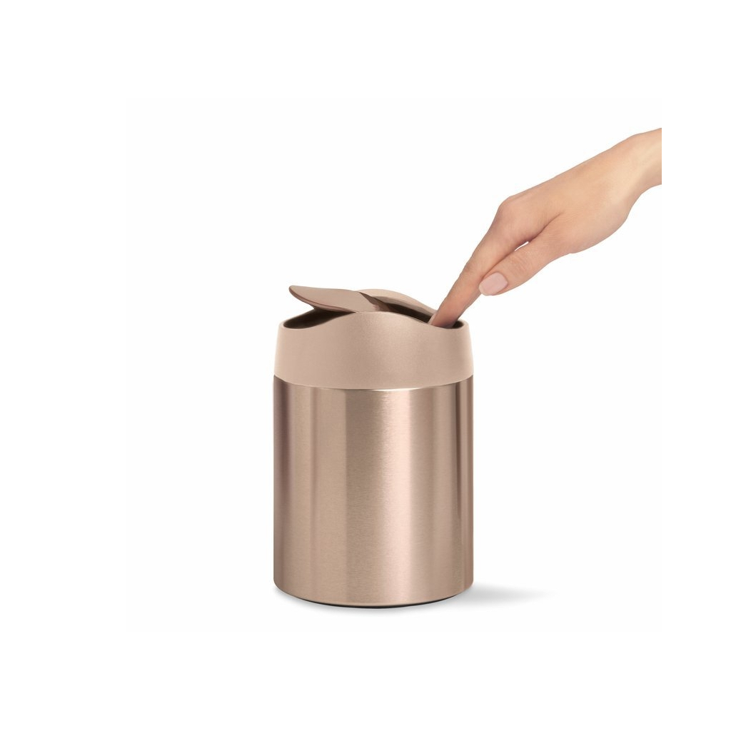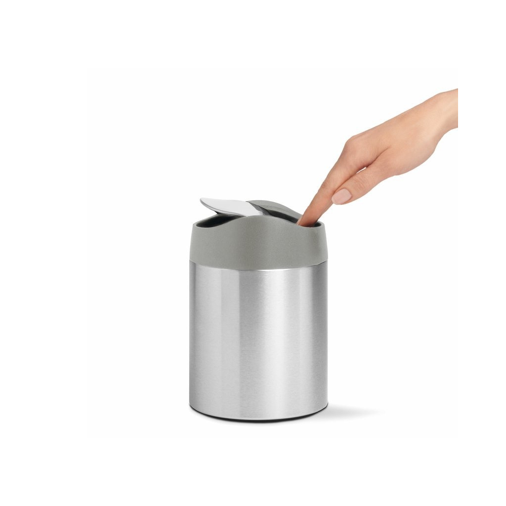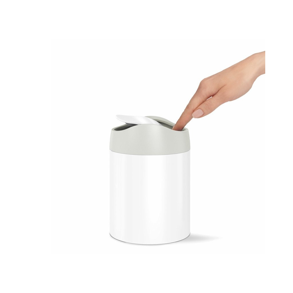 Odpadkový kôš na stôl Mini nájde svoje uplatnenie predovšetkým na kuchynských linkách, kancelárskych stoloch či toaletných stolíkoch pre likvidáciu menšieho odpadu. Jeho konštrukcia je vyrobená z elegantnej ocele s povrchovou úpravou proti odtlačkom prstov. Ovláda sa stlačením hojdacieho veka. Vyberať si môžete zo 4 farebných prevedení - z čistej nerezovej ocele, čiernej, bielej a rose gold.