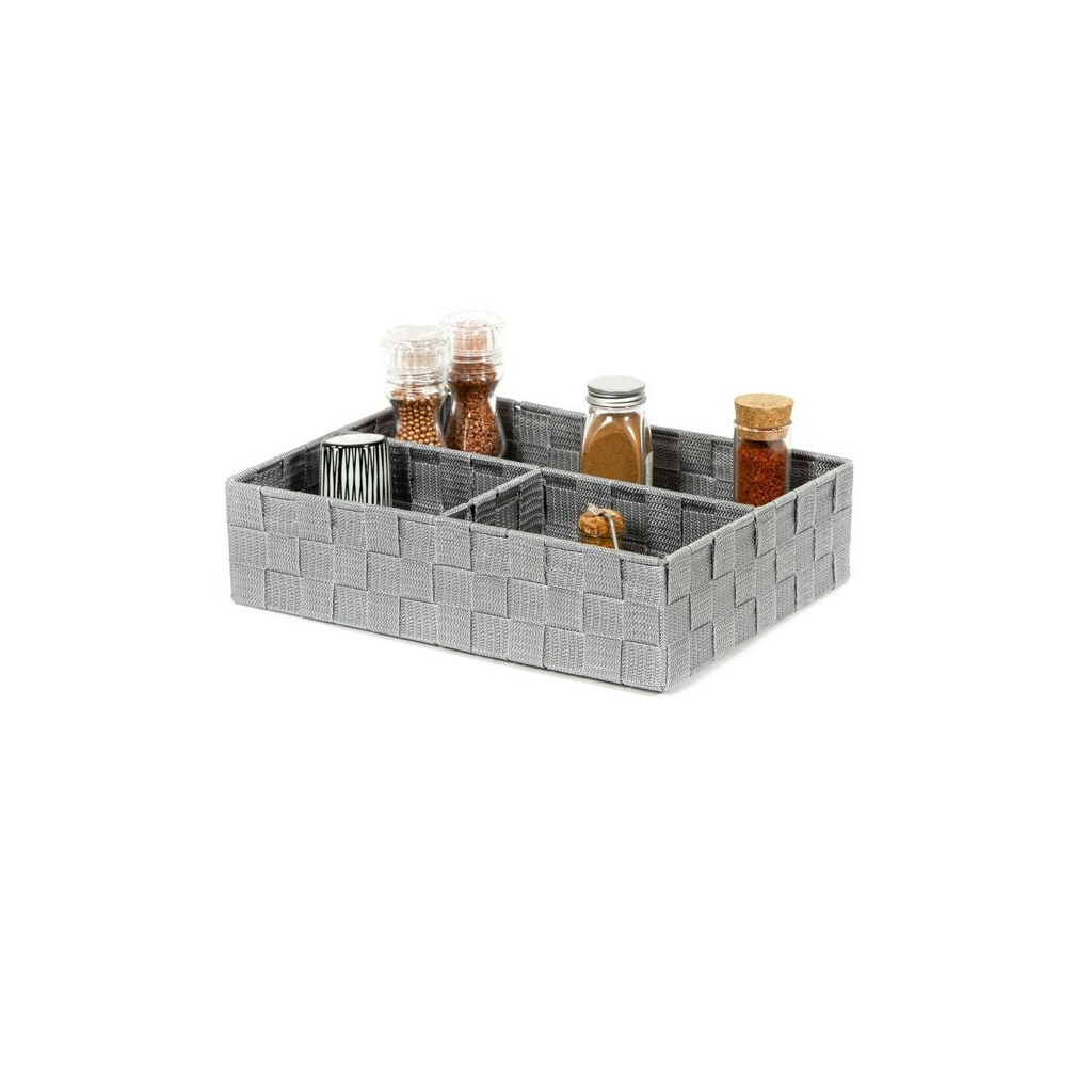Úložný organizér s 3 prehriadkami je praktickým doplnkom do kancelárii aj do domácnosti. Disponuje rozmermi 32 x 25 x 8 cm a je vyrobený z tkanej textílie s kovovým rámom. Do organizéru tak môžete uložiť takmer čokoľvek. Svojou veľkosťou sú tieto organizéry vhodné hlavne na poličky alebo do zásuviek.