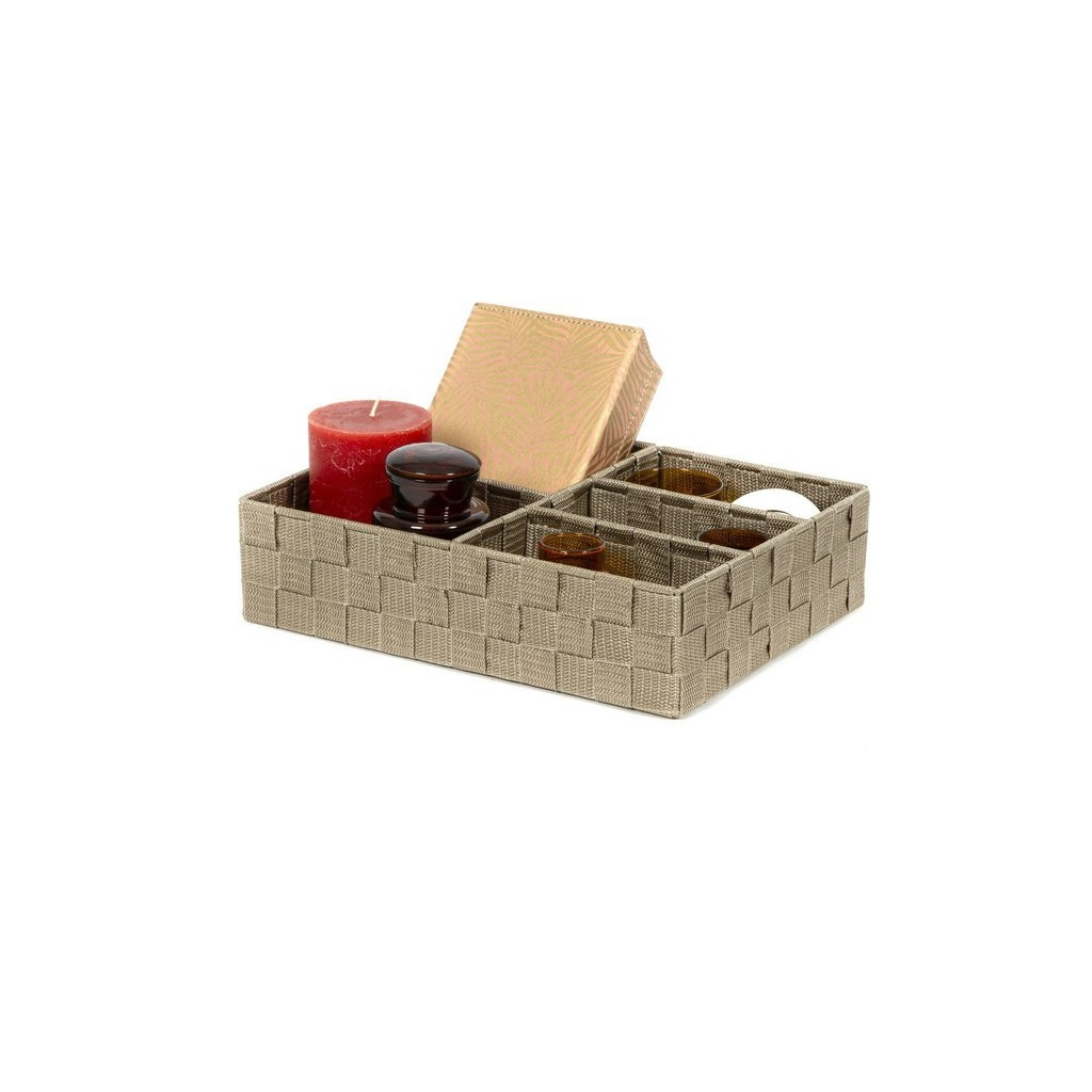 Úložný organizér s 5 priehradkami je praktickým doplnkom do kancelárii aj do domácností. Disponuje rozmermi 32 x 25 x 8 cm a je vyrobený z tkanej textílie s kovovým rámom. Do organizéru tak môžete uložiť takmer čokoľvek. Svojou veľkosťou sú tieto organizéry vhodné hlavne na poličky alebo do zásuviek.