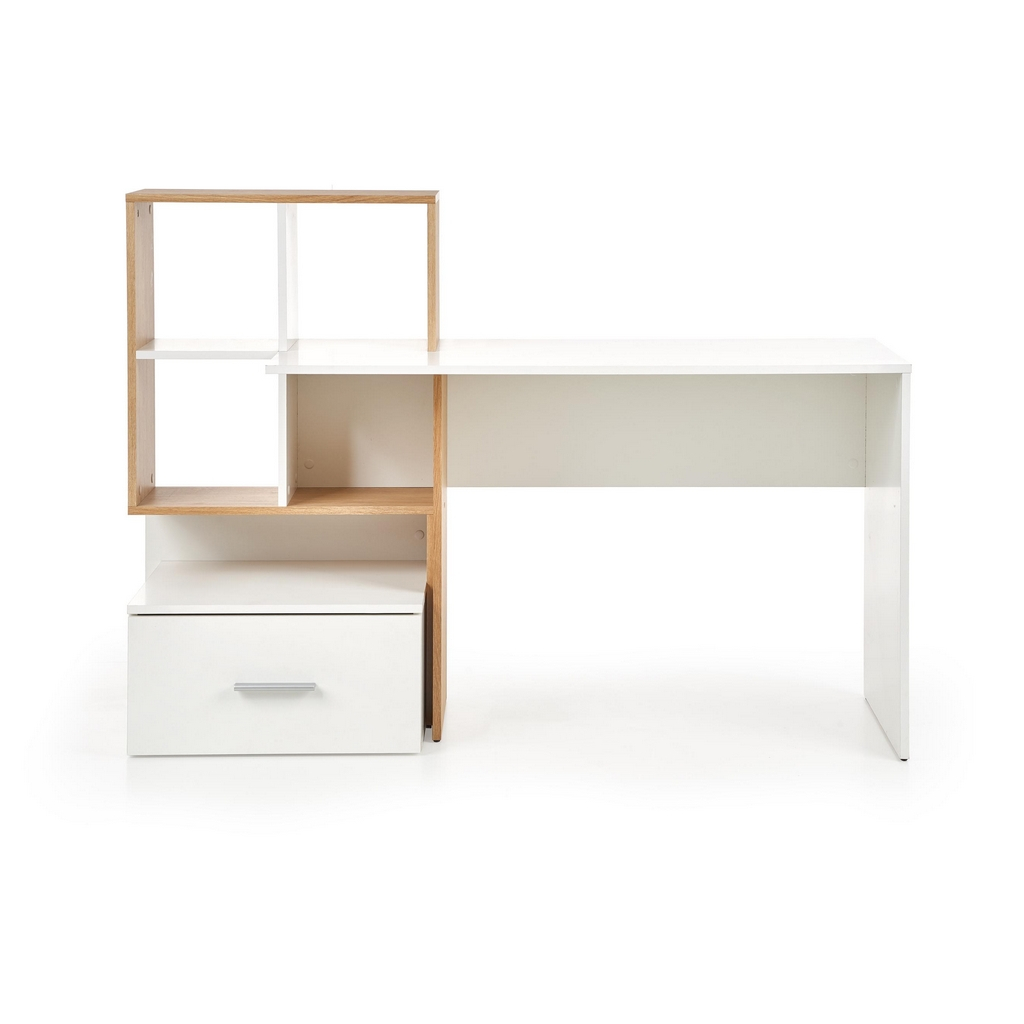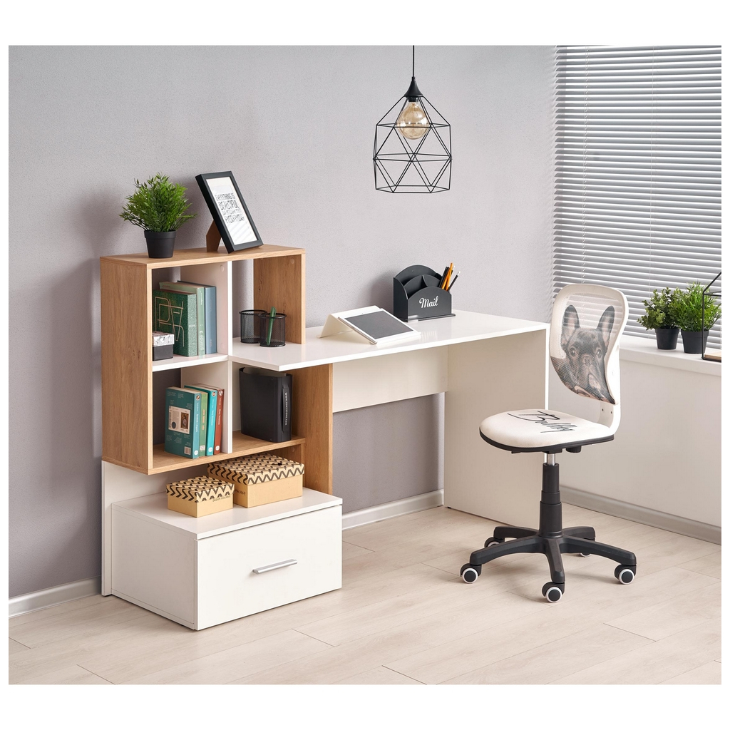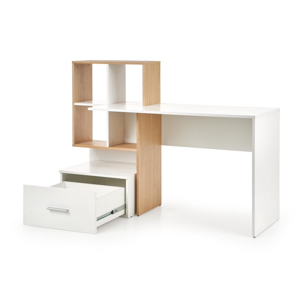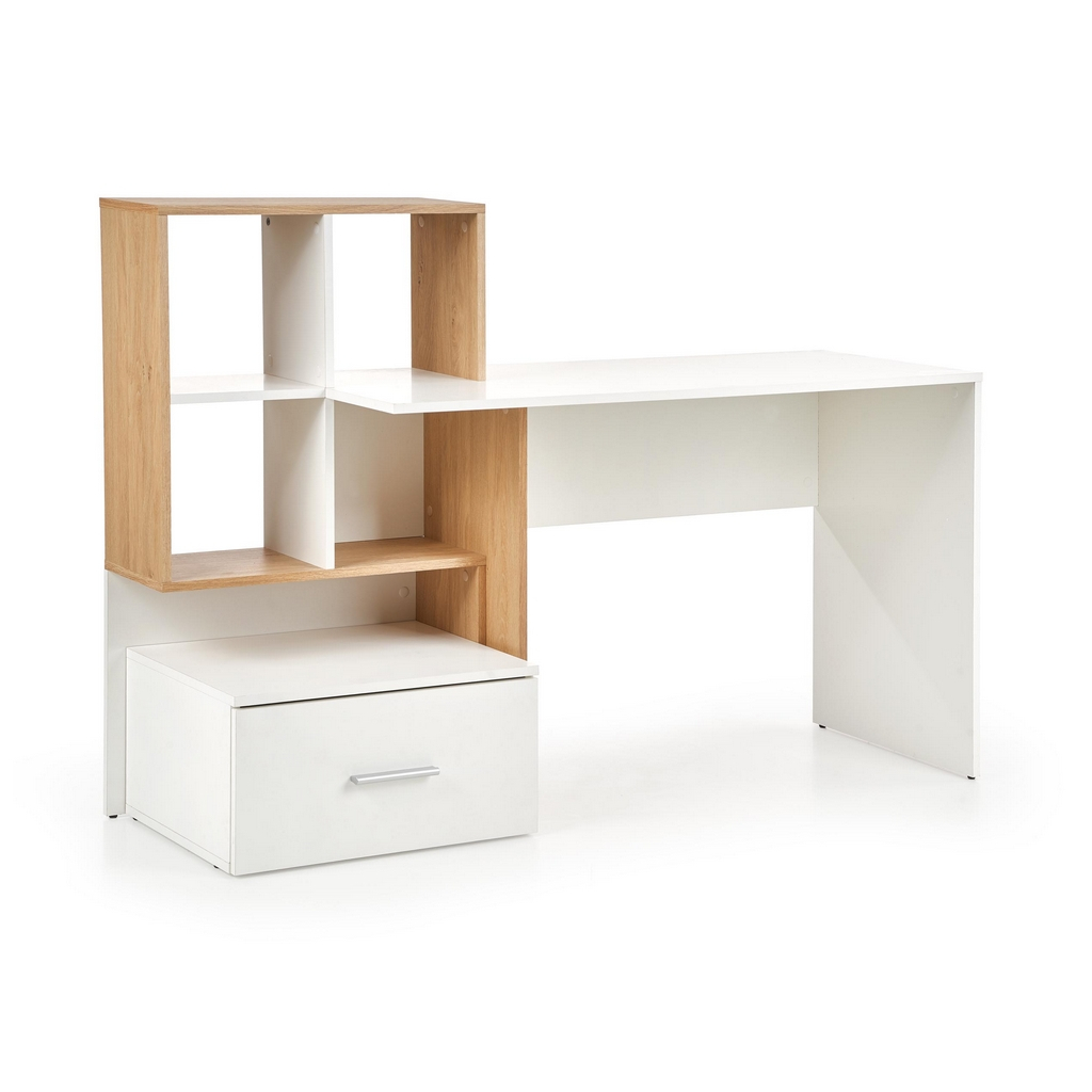 Grosso vám bude skvelým spoločníkom v pracovni alebo študentskej izbe. Funkciu stola totiž kombinuje s bohatým úložným priestorom vo forme regálu a priestrannej zásuvky na ľavej strane.