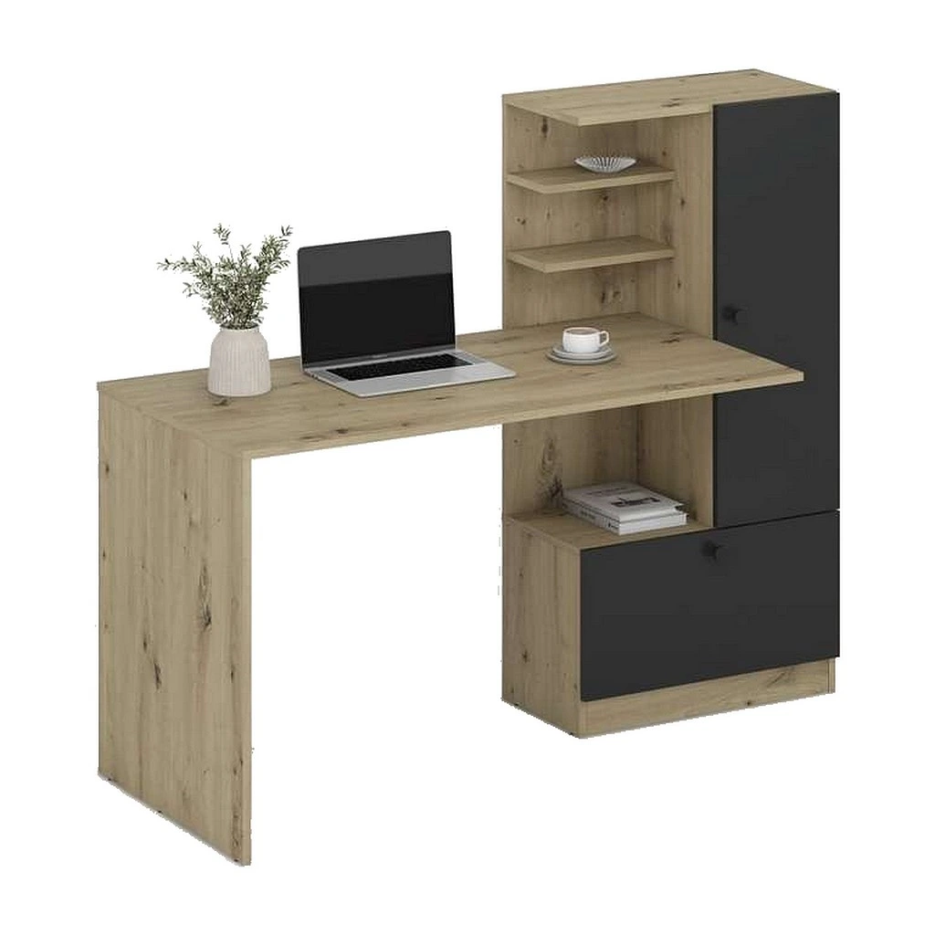 Písací stôl Hollins, dub artisan / čierna