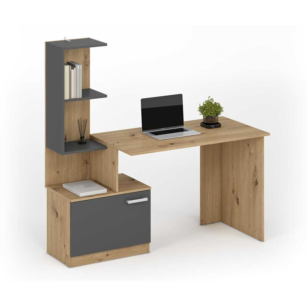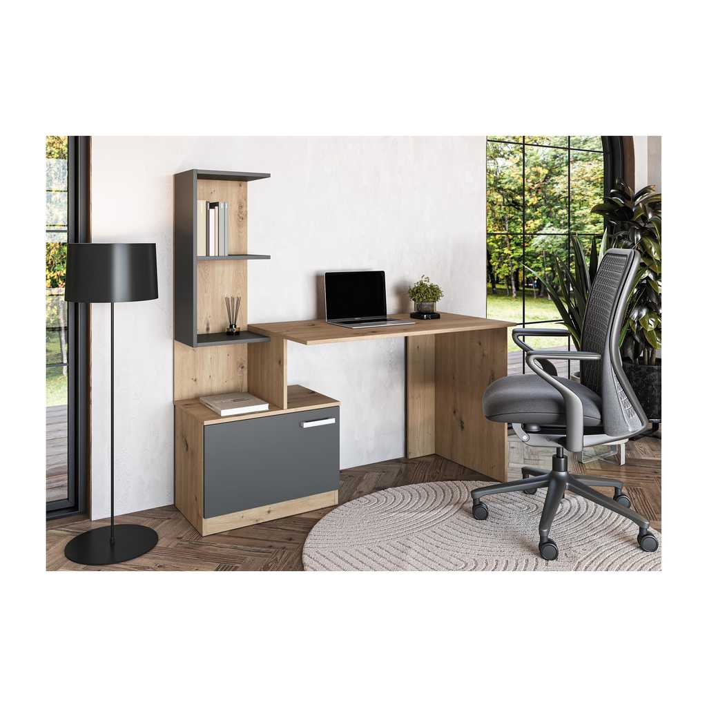 Písací stôl Kirkton ponúka kombináciu funkčnosti a štýlového dizajnu, ktorá sa hodí do moderného pracovného priestoru alebo študentskej izby. Vďaka svojej priestrannej pracovnej ploche a integrovaným úložným priestorom umožňuje pohodlné usporiadanie pracovných pomôcok, kníh a ďalších potrebných vecí. Vyrobený je z kvalitného dreva, ktoré zaručuje pevnosť a dlhú životnosť nábytku.