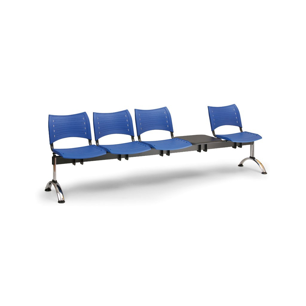 Plastová lavica VISIO v prevedení s chrómovanými nohami a odkladacím stolíkom je skvelým vybavením do verejných priestorov, hál či najrôznejších typov čakární. Jednotlivé miesta na sedenie sú umiestnené na oceľovej konštrukcii. Sedadlo aj operadlo sú vyrobené z tvrdeného plastu. Veľkou výhodou tohto materiálu je odolnosť proti poškodeniu a veľmi jednoduchá údržba.