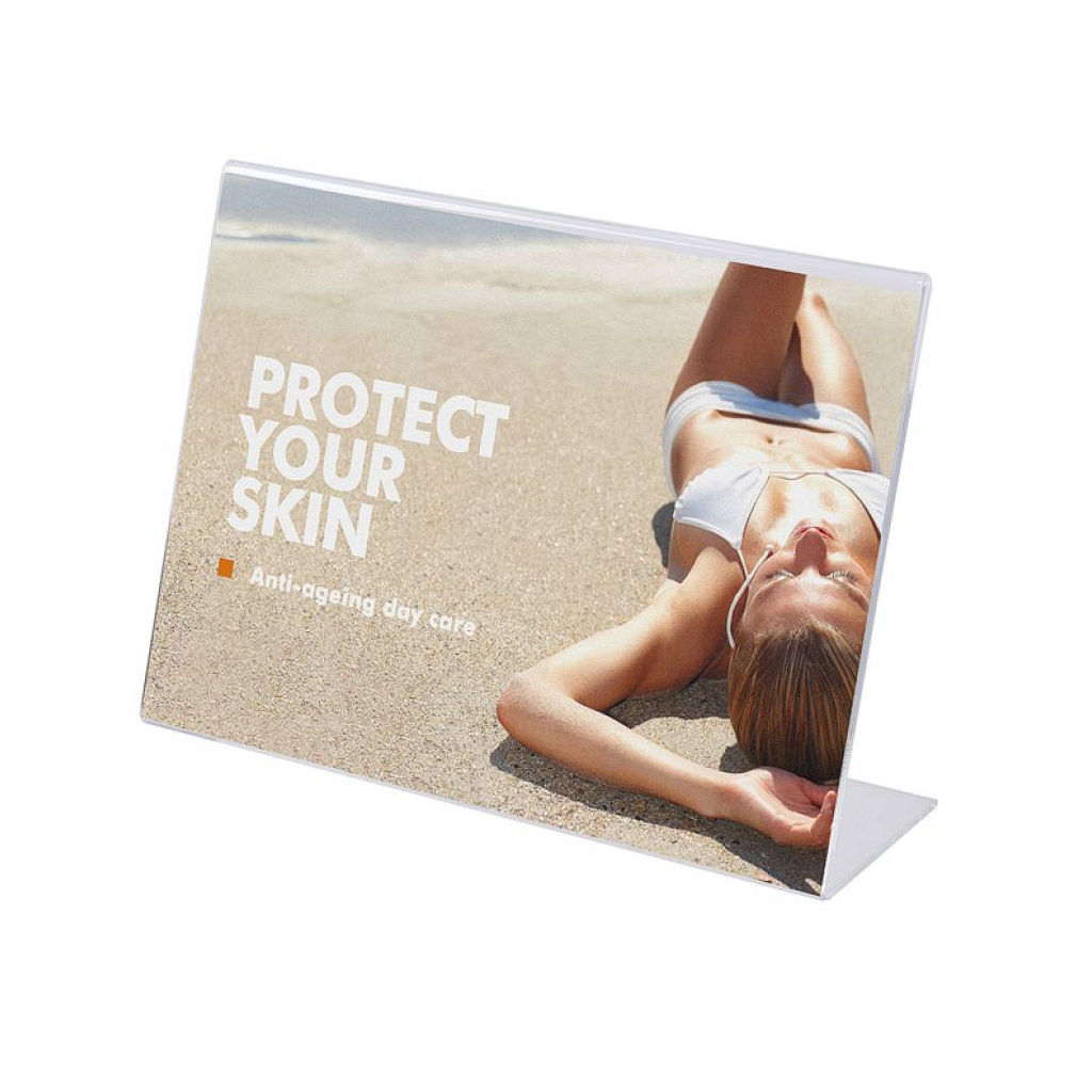 Hlavné prednosti plexi stojančeka A6, typ L na šírku: