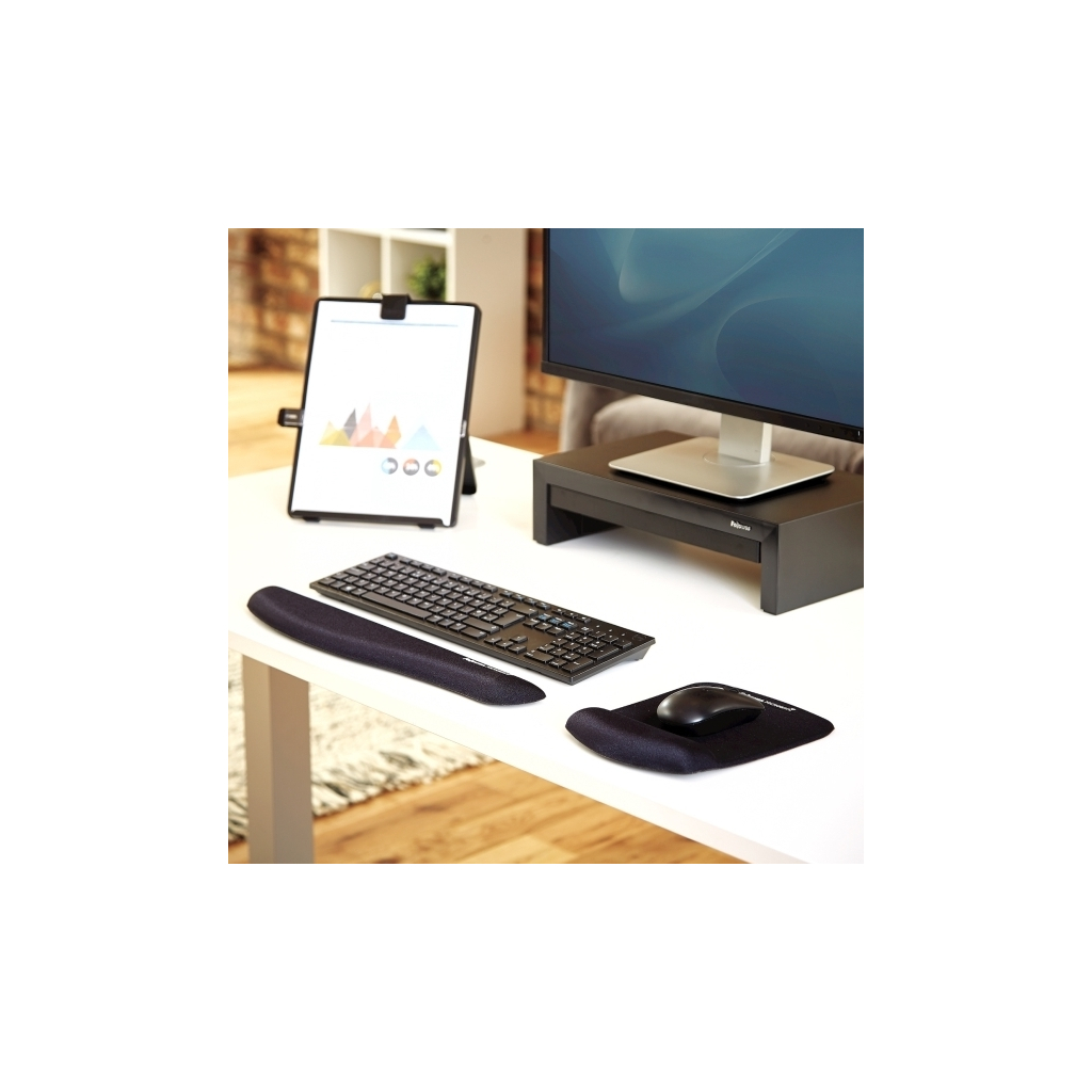 Podložka pod myš Fellowes PlushTouch slúži ako preventívna ergonomická pomôcka proti bolestiam zápästia a nepríjemným otlakom. Pomáha udržať zápästie v správnej polohe behom práce pri počítači. Využijete ju ako v kancelárii, tak pri surfovaní po internete z pohodlia domova. Je vyplnená pamäťovou penou a potiahnutá textíliou s antimikrobiálnou úpravou.