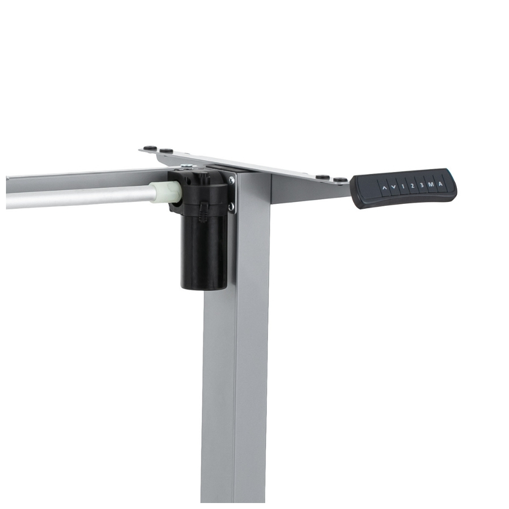 Podnož stola OfficeTech 2 disponuje ovládacím panelom, ktorým si nastavíte presnú výšku stola. Výšku stola ovládate pomocou tlačidiel so šípkami. Šípka nahor polohu dosky zvýši, šípka dole naopak zníži. Aktuálnu pozíciu uvidíte neustále na displeji. Zásluhou pamäte mechanizmu si môžete uložiť 3 najpoužívanejšie výškové pozície.
