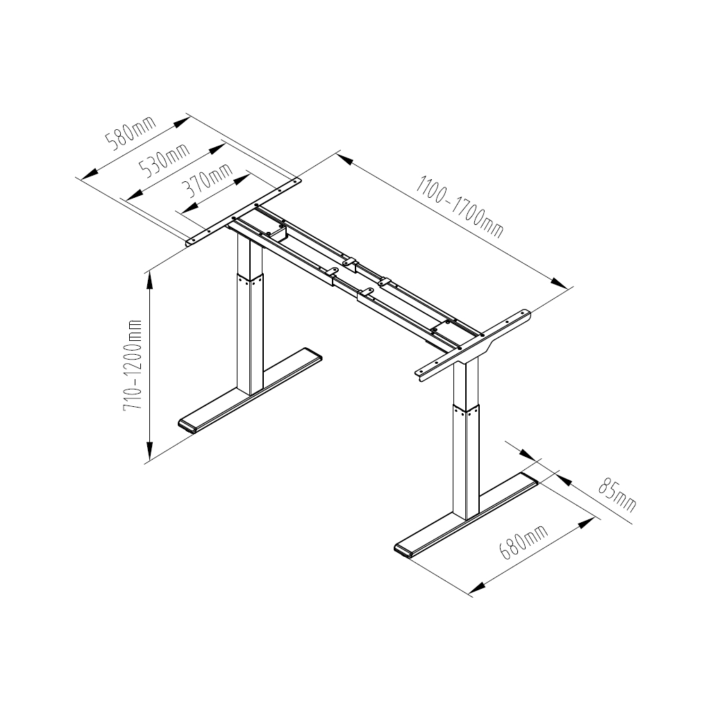 Pre tento model podnože sú vhodné dosky stola o dĺžke 120-180 cm a hĺbke 60-80 cm. Celkové rozměry samotné podnože jsou 110–170 × 68 cm.