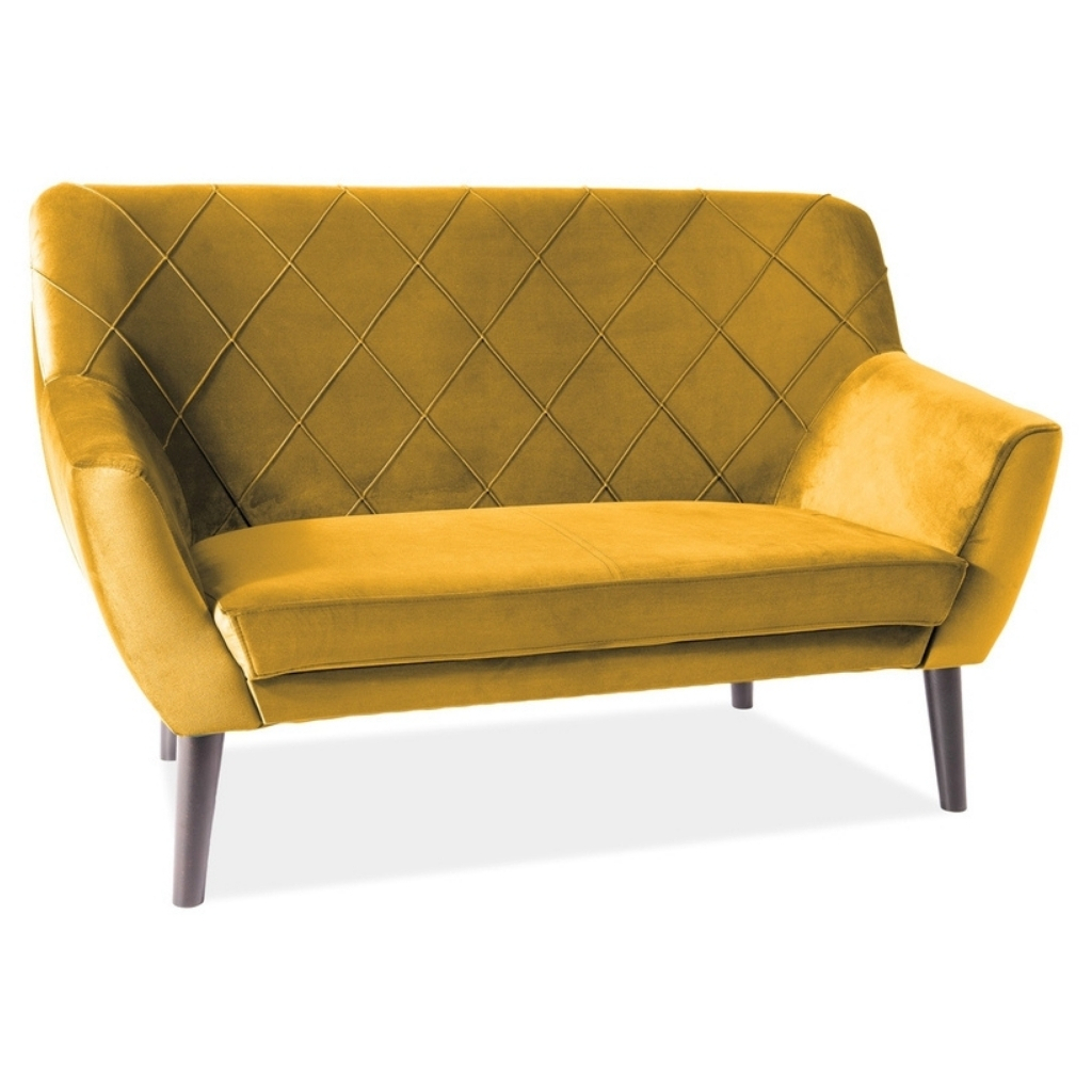 Pohovka Kier je čalúnená zamatovou látkou. Drevený podstavec jej dodáva stabilitu a pevnosť a vďaka jej rozmerom sa na ňu zmestia až 2 osoby.