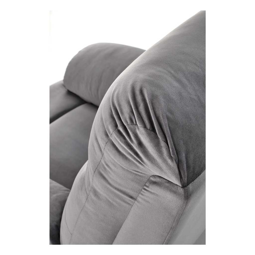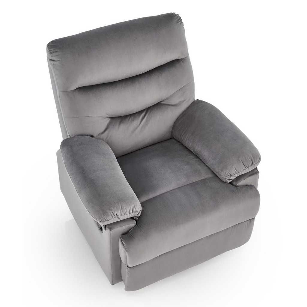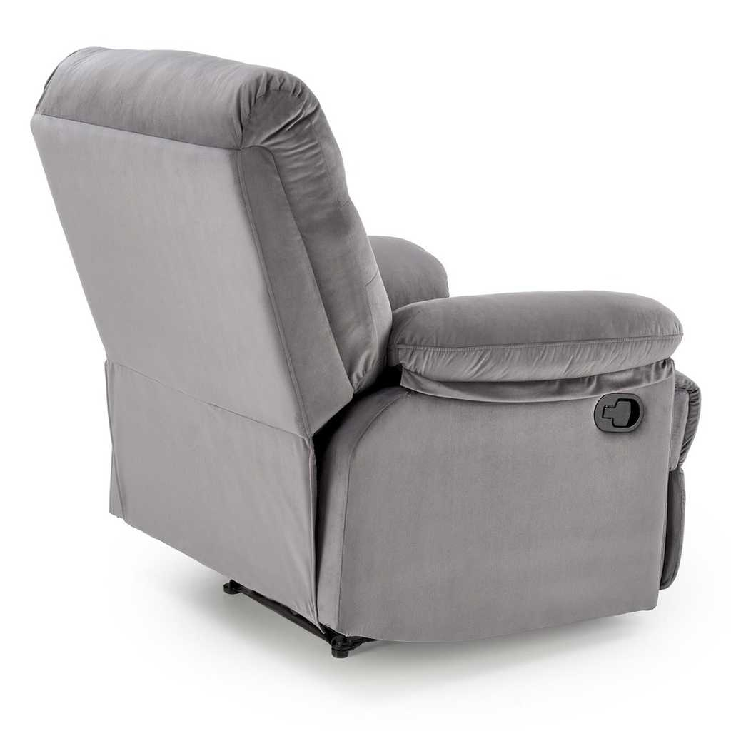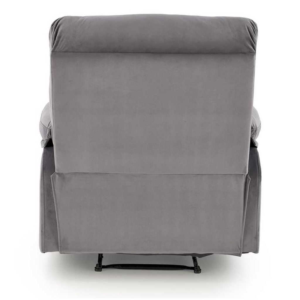 Celé kreslo je čalúnené látkou pripomínajúcou zamat, ktorá je exkluzívna a príjemná na dotyk. Viditeľné prvky konštrukcie sú vyrobené z čierneho kovu.