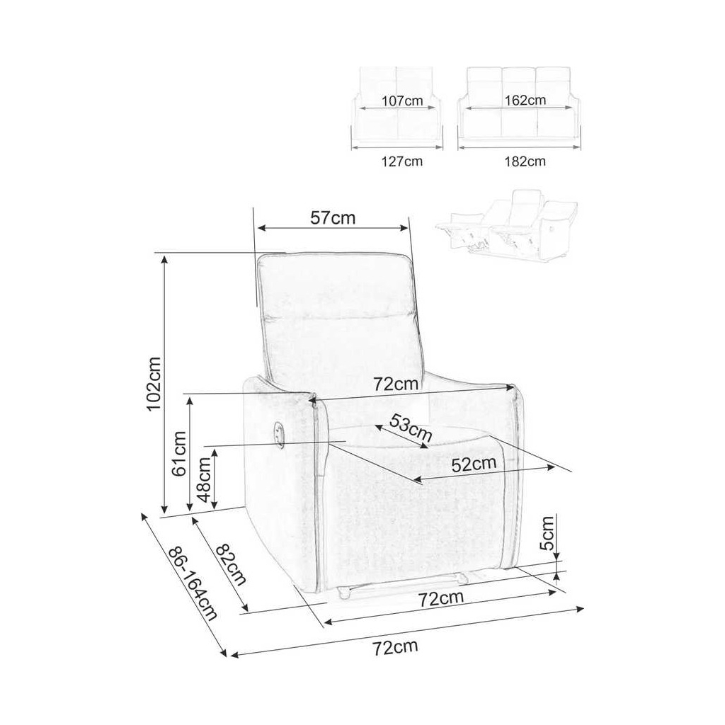 - Rozmery: dĺžka 127 cm, hĺbka 86 cm (164 cm rozložená)