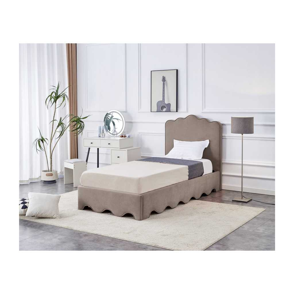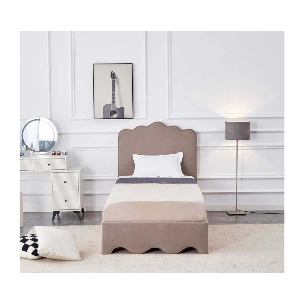 Posteľ Erin je ideálnou voľbou pre všetkých, ktorí hľadajú praktické a štýlové riešenie pre svoju spálňu. Vďaka pevnej drevenej konštrukcii poskytuje spoľahlivú podporu a stabilitu, zatiaľ čo látkový poťah zabezpečuje príjemný dotyk a jednoduchú údržbu. Posteľ je navrhnutá tak, aby dokonale sadla na matrac s rozmermi 90 x 200 cm, čo ju robí skvelou voľbou pre jednotlivcov alebo menšie miestnosti.