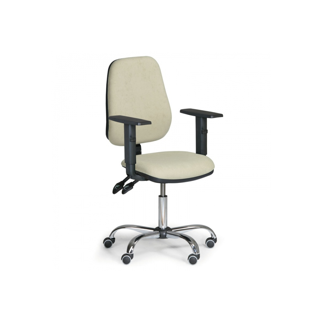 Pracovná stolička Alex je skvelou voľbou do priemyselných oblastí, najmä do montážnych hál k pracovným linkám. Môžete ju však bez problémov využívať aj v bežných kanceláriách. Stolička je vybavená piestom s výškovým nastavením, a vďaka pevným podrúčkam vám zaistí vždy pohodlné sedenie pri práci.