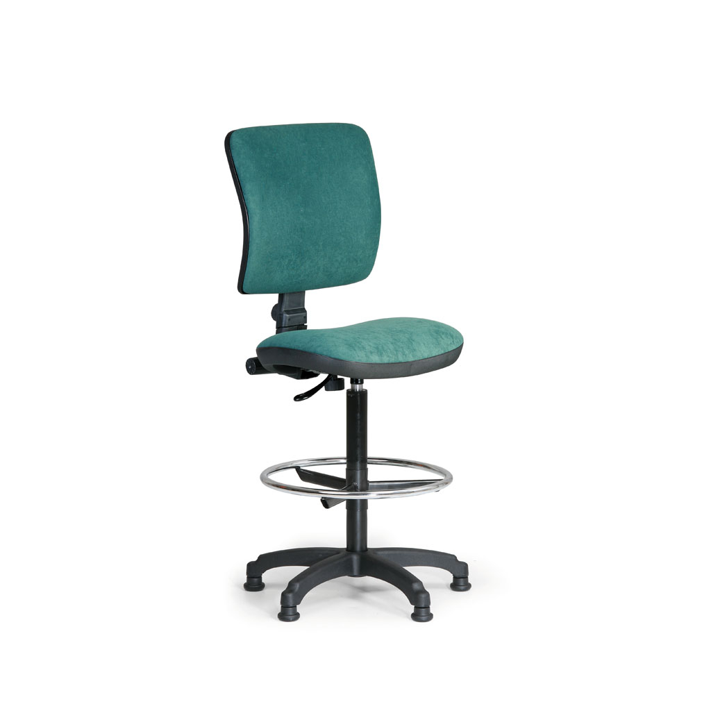 Pracovná stolička Milano II s opierkou nôh je skvelou voľbou do priemyselných oblastí, najmä do montážnych hál k pracovným linkám. Stolička je vybavená piestom pre výškové nastavenie, vďaka čomu vám zaistí vždy pohodlné sedenie. Výška sedu od zeme dosahuje až 79 cm, preto je doplnená oporným kruhom na vyloženie vašich nôh.