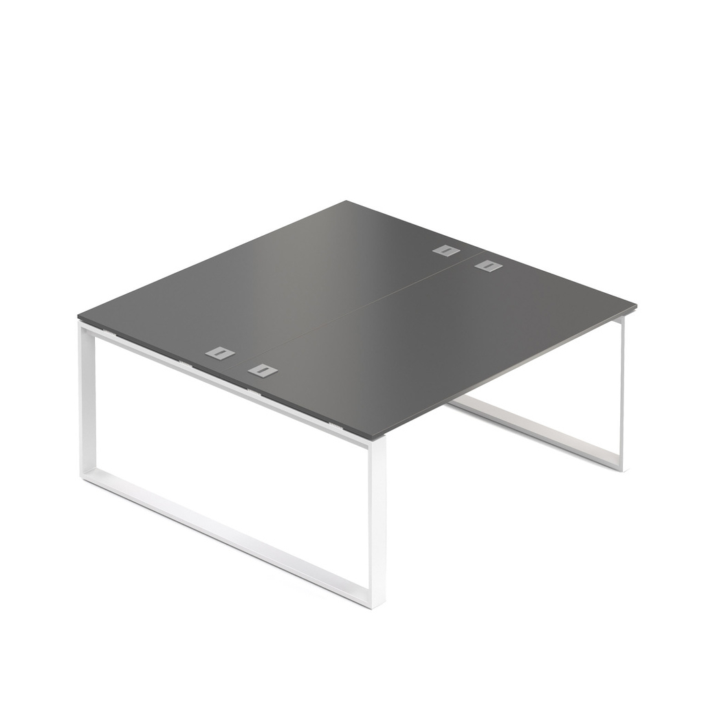 Pracovné miesto Creator 160 x 160 cm, biela podnož, 2 nohy, antracit