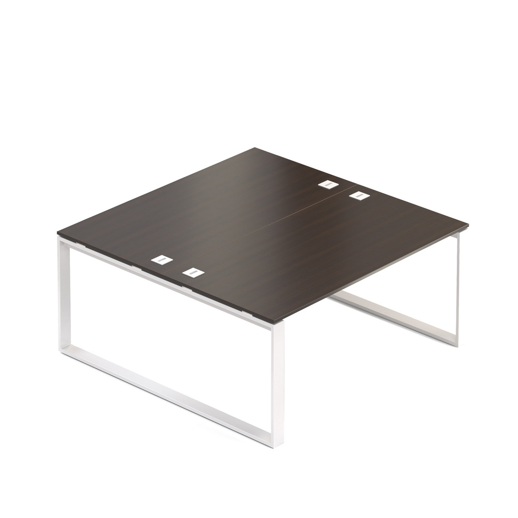 Pracovné miesto Creator 160 x 160 cm, biela podnož, 2 nohy, wenge