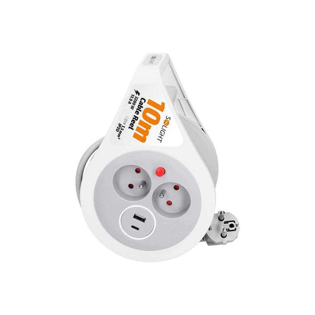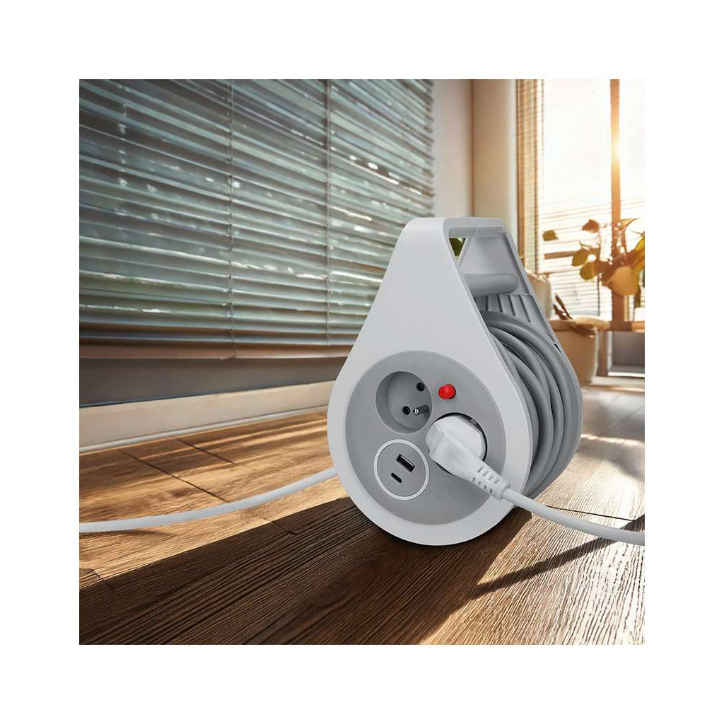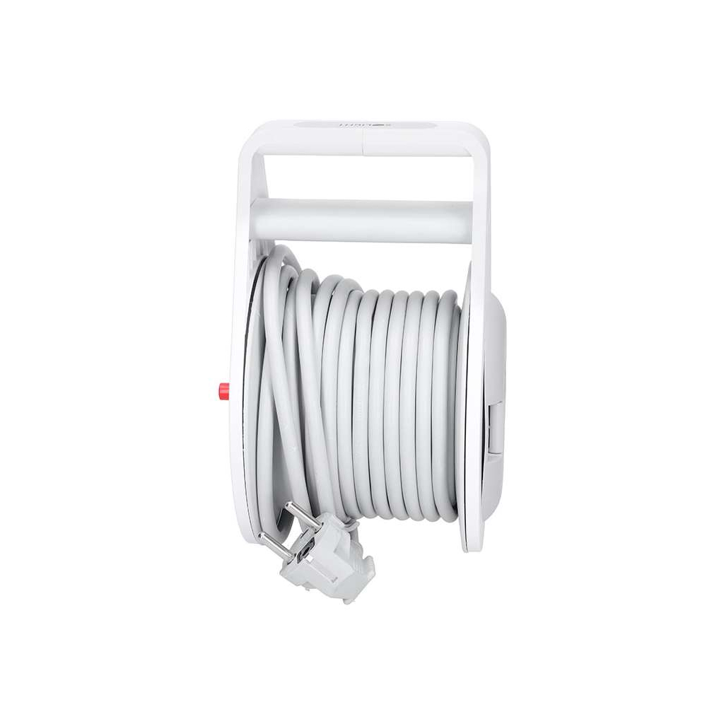 Kábel je vybavený tepelnou poistkou, ktorá chráni pred preťažením a zabezpečuje bezpečný chod zariadení. Kvalitný navíjací mechanizmus v pevnom plastovom tele zaručuje jednoduché a pohodlné používanie, pričom celý produkt je určený pre vnútorné použitie.