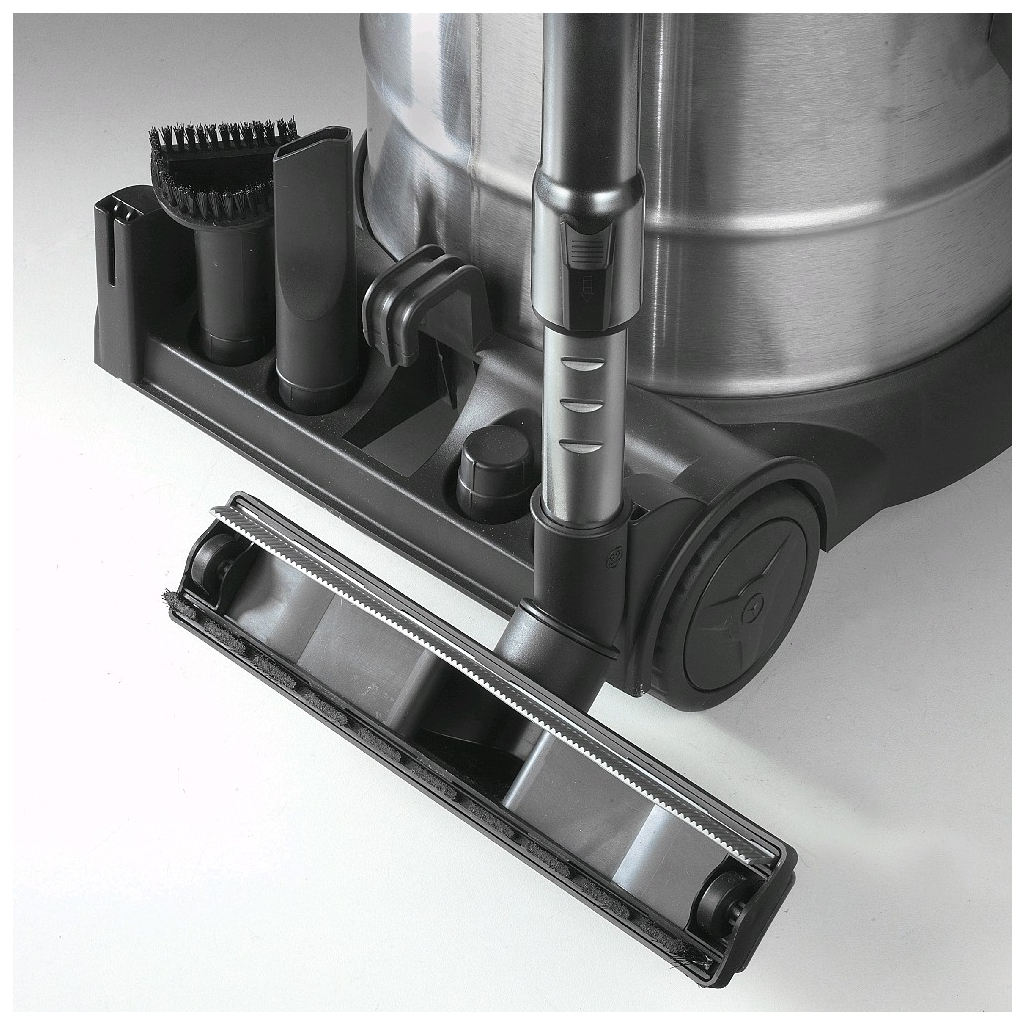 Potěší vás funkce suchého i mokrého vysávání a foukání. Objem jeho sběrné nádoby je 20 l. Praktické příslušenství zahrnuje také kontrolku přetížení, teleskopickou trubici o maximální delce 78 cm, sací hadici o průměru 32 mm a délce 2,6 m, HEPA filtrem, kombinovaný kartáč a rohový návstavec.