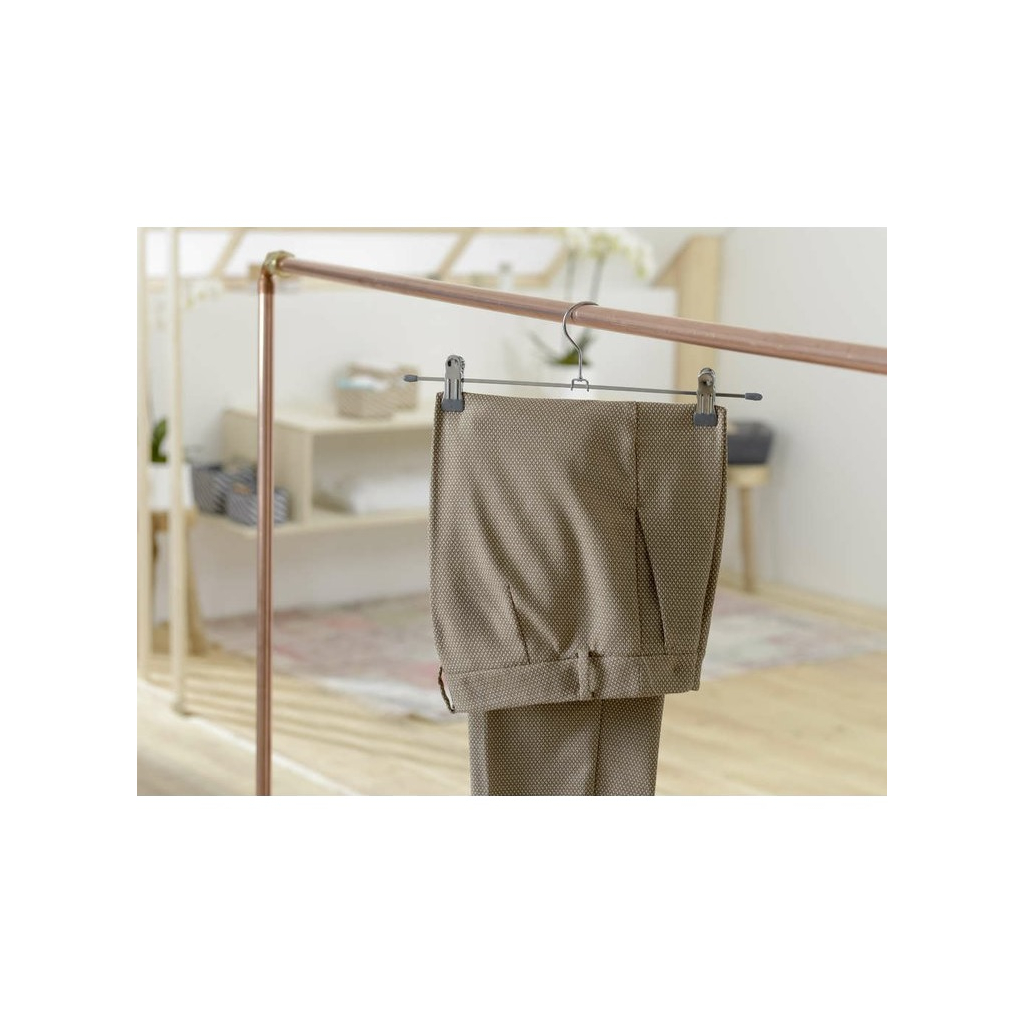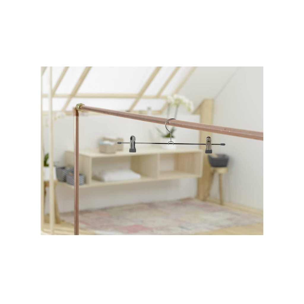 Ramienko Compactor je skvelým doplnkom do všetkých šatníkov, či už v kancelárii, alebo v domácnosti. Je vyrobené z kovu a disponuje rozmermi 35 x 0,7 x 11,3 cm. Výhodou ramienok je ich tenký profil, vďaka ktorému v závesnom priestore nezaberú mnoho miesta, a tiež uchycujúce klipy, ktoré vám pomôžu pri zavesení sukne či nohavíc.