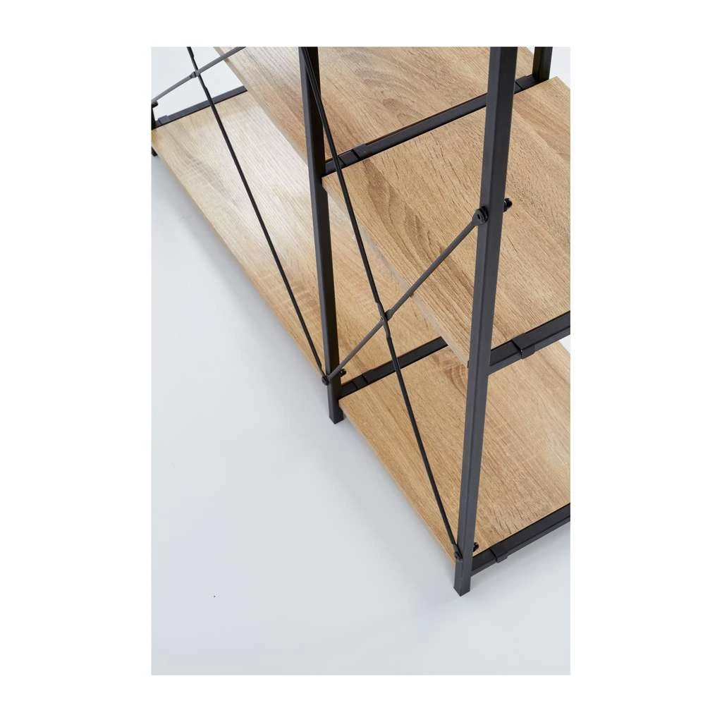 S jeho rozmermi 90 cm na dĺžku, 30 cm na hĺbku a 190 cm na výšku môžete pohodlne ukladať knihy, dekorácie alebo každodenné potreby. Pevná konštrukcia z kovu zaručuje odolnosť a dlhú životnosť, zatiaľ čo dosky z dreva prinášajú prirodzený a teplý dojem.