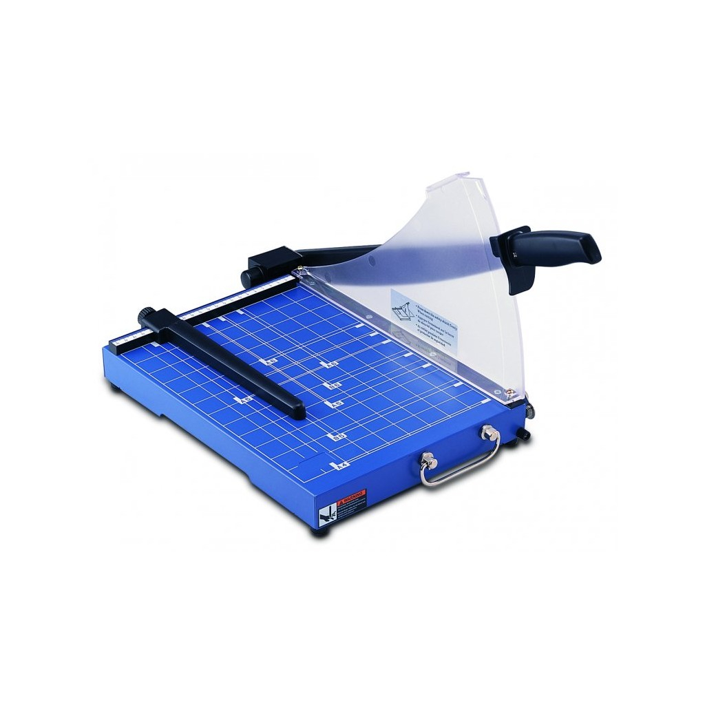 Páková rezačka KW 310 laser je skvelým pomocníkom v kancelárií. Ak potrebujete orezať papierový dokument na presné rozmery, je rezačka ideálnou voľbou. Maximálna hrúbka rezu je 20 listov papiera (80 g). Listy rozrežete pomocou ručného prítlaku na reznú páku. Robustná celokovová základňa s posuvným dorazom sa postará o vysokú odolnosť aj pri intenzívnom používaní. Nemusíte mať obavy z rezného noža, možnému zraneniu zabráni jeho plastový bezpečnostný kryt. Nôž si môžete naviac zablokovať v spodnej polohe. Pre jednoduchú manipuláciu s prístrojom použijete praktický kovový úchop.