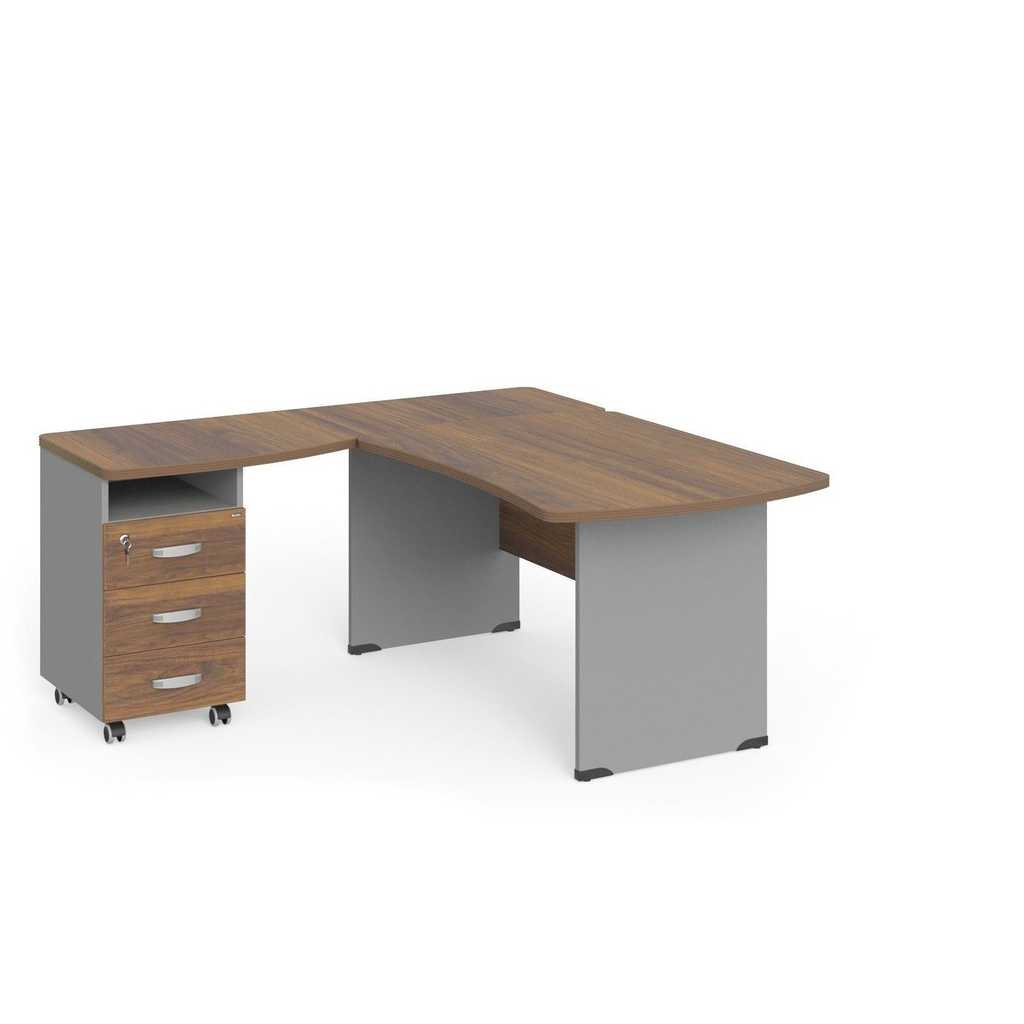 Rohové pracovné miesto Manager 160 x 160 cm, ľavé, orech warmia / sivá
