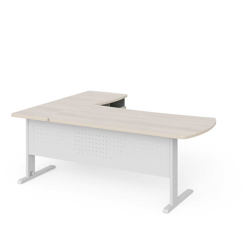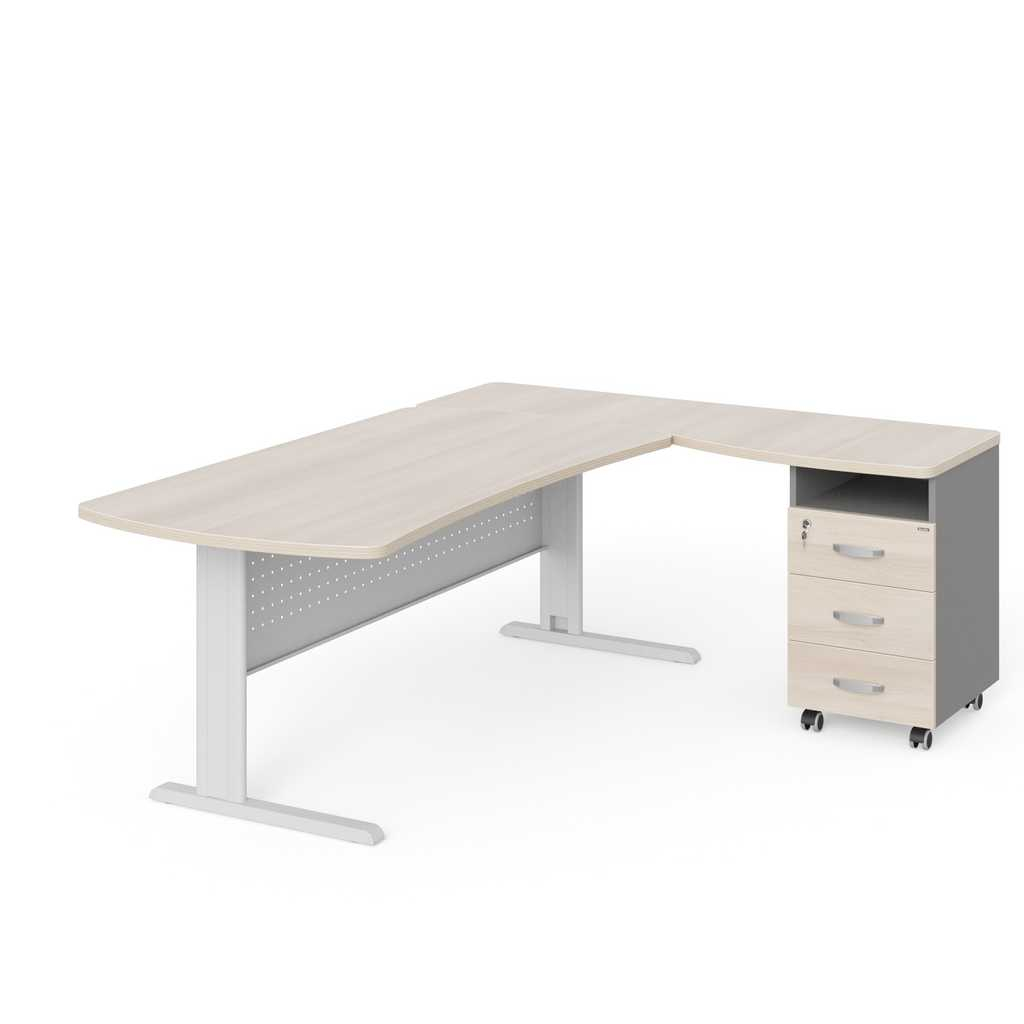 Tento rohový pracovný stôl Manager je vynikajúcou voľbou pre tých, ktorí hľadajú praktický a stabilný pracovný priestor s dostatkom úložného miesta a dizajnom, ktorý sa hodí do moderného kancelárskeho prostredia.
