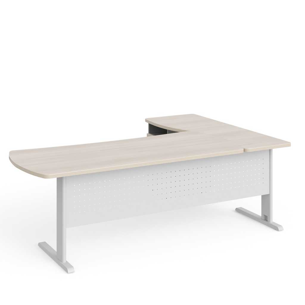 Tento rohový pracovný stôl je navrhnutý pre efektívne využitie pracovného priestoru s dôrazom na pohodlie a praktickosť. Jeho ľavé vyhotovenie spolu s rozmermi 220 x 160 cm poskytuje dostatok miesta na prácu i uloženie potrebných pracovných pomôcok. Kvalitné kovové nohy zaručujú stabilitu, zatiaľ čo rektifikačné nožičky umožňujú jednoduché vyrovnanie aj na nerovných podlahách.