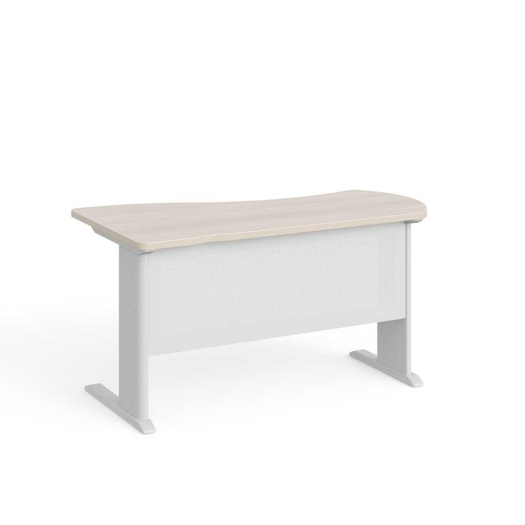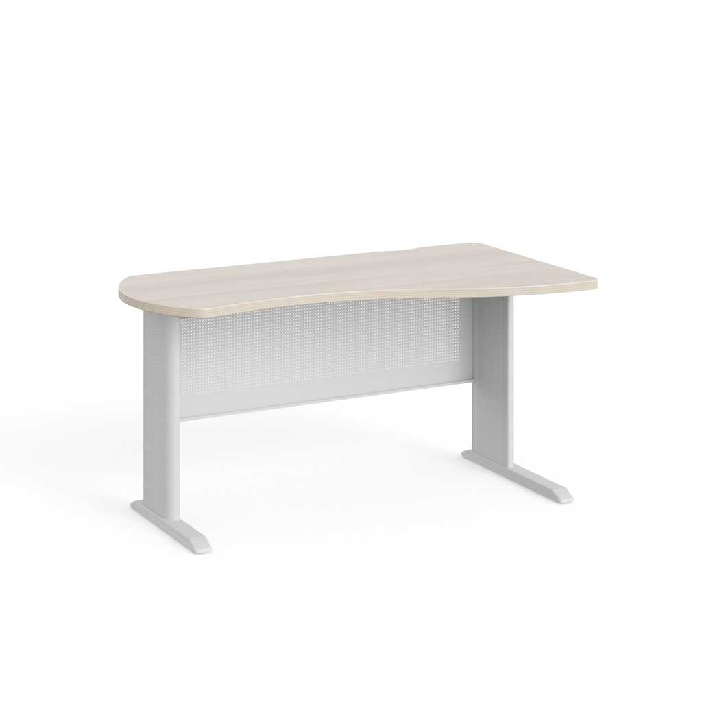 Drevená pracovná doska je pevná a má hrúbku 28 mm, čo zvyšuje odolnosť stola proti mechanickému opotrebeniu. Kovová podnož dodáva stolu stabilitu a dlhú životnosť, zatiaľ čo rektifikačné nožky s rozsahom 15 mm umožňujú vyrovnať nerovnosti podlahy. Stôl má klasickú výšku 74 cm, čo je ideálne pre väčšinu kancelárskych stoličiek.