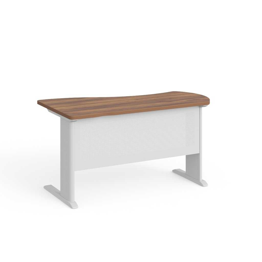 Drevená pracovná doska je pevná a má hrúbku 28 mm, čo zvyšuje odolnosť stola proti mechanickému opotrebeniu. Kovová podnož dodáva stolu stabilitu a dlhú životnosť, zatiaľ čo rektifikačné nožky s rozsahom 15 mm umožňujú vyrovnať nerovnosti podlahy. Stôl má klasickú výšku 74 cm, čo je ideálne pre väčšinu kancelárskych stoličiek.