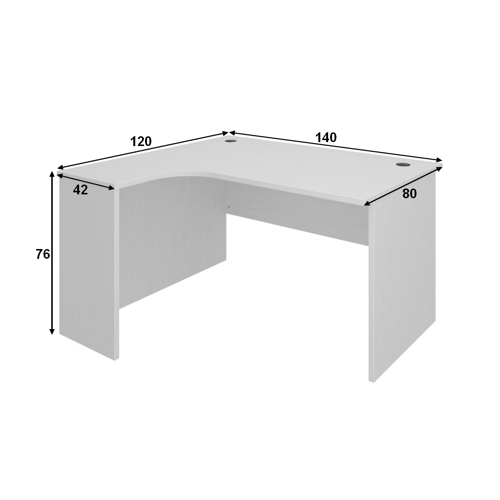 Doska stola je vo výške 76 cm, čo vám v spojení s ergonomickou kancelárskou stoličkou zaistí optimálne podmienky pre prácu pri počítači.