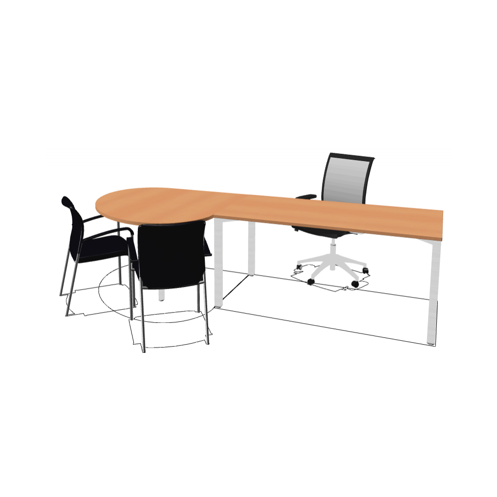 Rokovací prvok 120 x 120 cm môžete pristaviť k stolom ProOffice typu B. Rozširuje ich pracovnú plochu a zároveň je zaujímavým dizajnovým prvkom, ktorý vašej pracovni dodá moderný vzhľad. Obzvlášť ak často osobne komunikujete s klientmi a mávate v kancelárii pracovné schôdzky, odporúčame doplniť váš stôl týmto prvkom. Môžete k nemu pohodlne pristaviť až dve konferenčné stoličky.