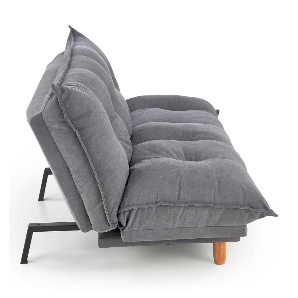 Pohovka je čalúnená látkou, ktorá vám poskytne potrebné pohodlie pri sedení a spaní. Podstavec a konštrukcia sú vyrobené z kombinácie masívneho dreva a kovu.
