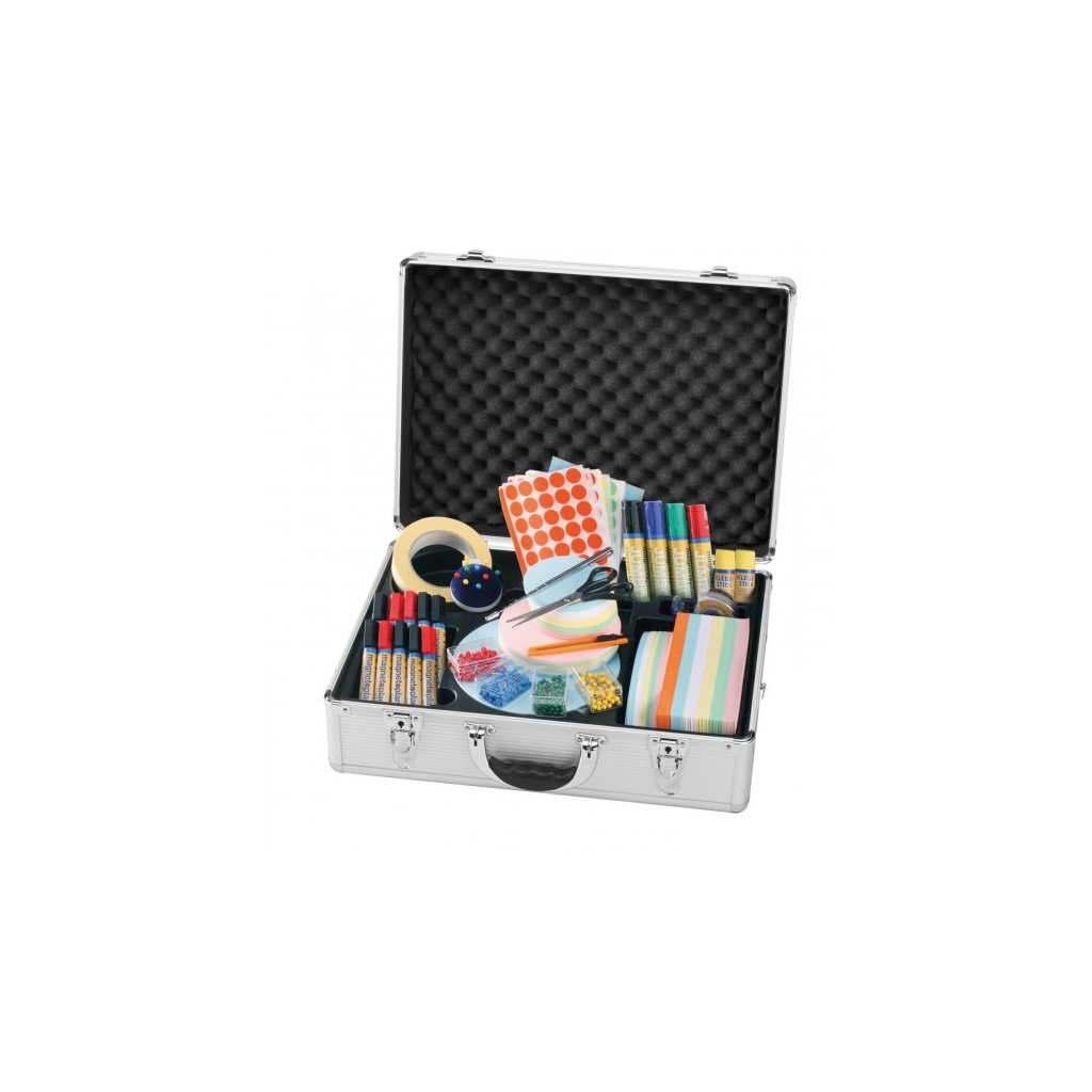 Sada Magnetoplan pre moderátorov je skvelou voľbou na časté prezentácie. Obsahuje totiž všetko potrebné, a to nielen na zápis, či prichytenie informácií. Všetky prezentačné pomôcky sú navyše uložené v praktickom hliníkovom kufríku, ktorý môžete pohodlne prenášať a disponuje tiež popruhom na rameno.