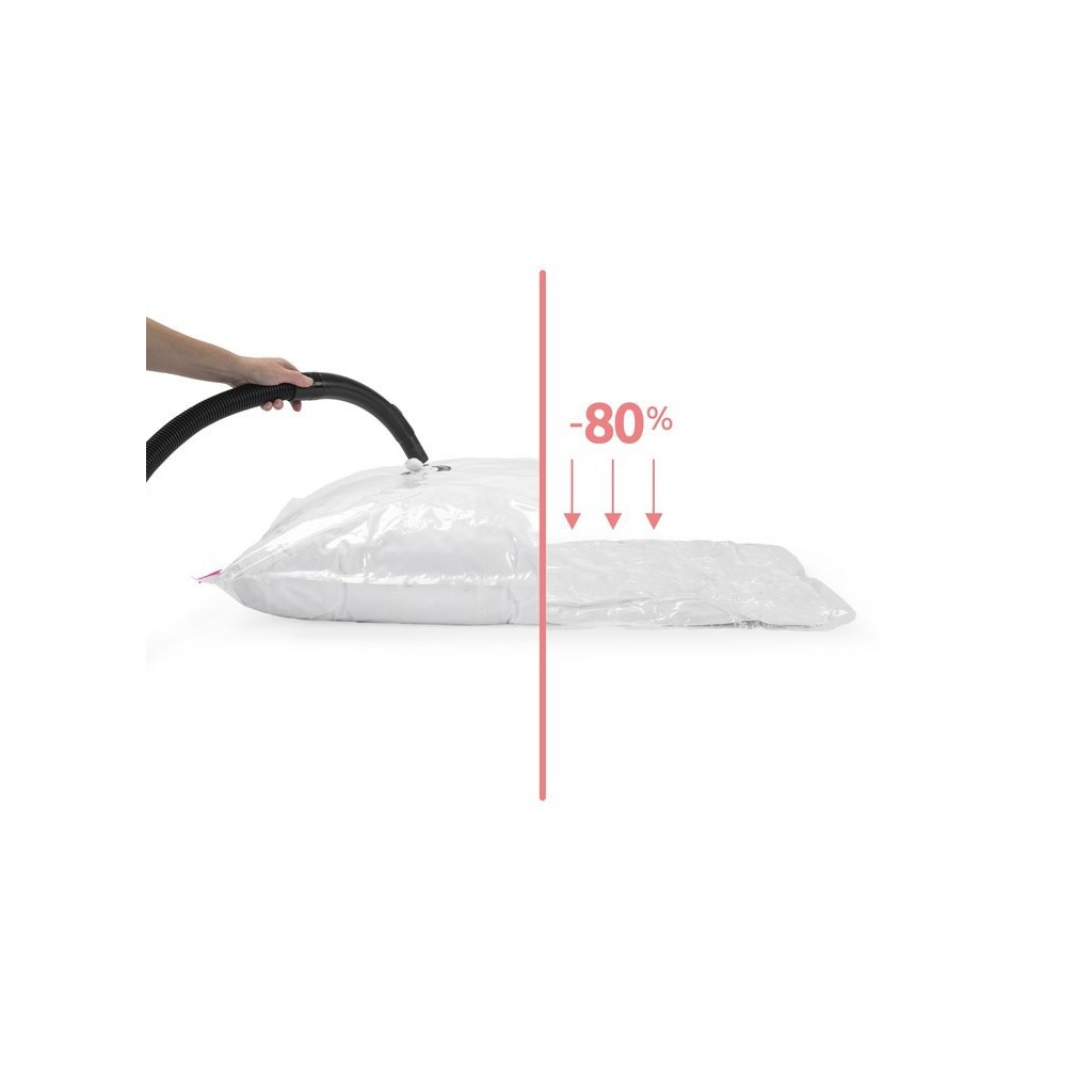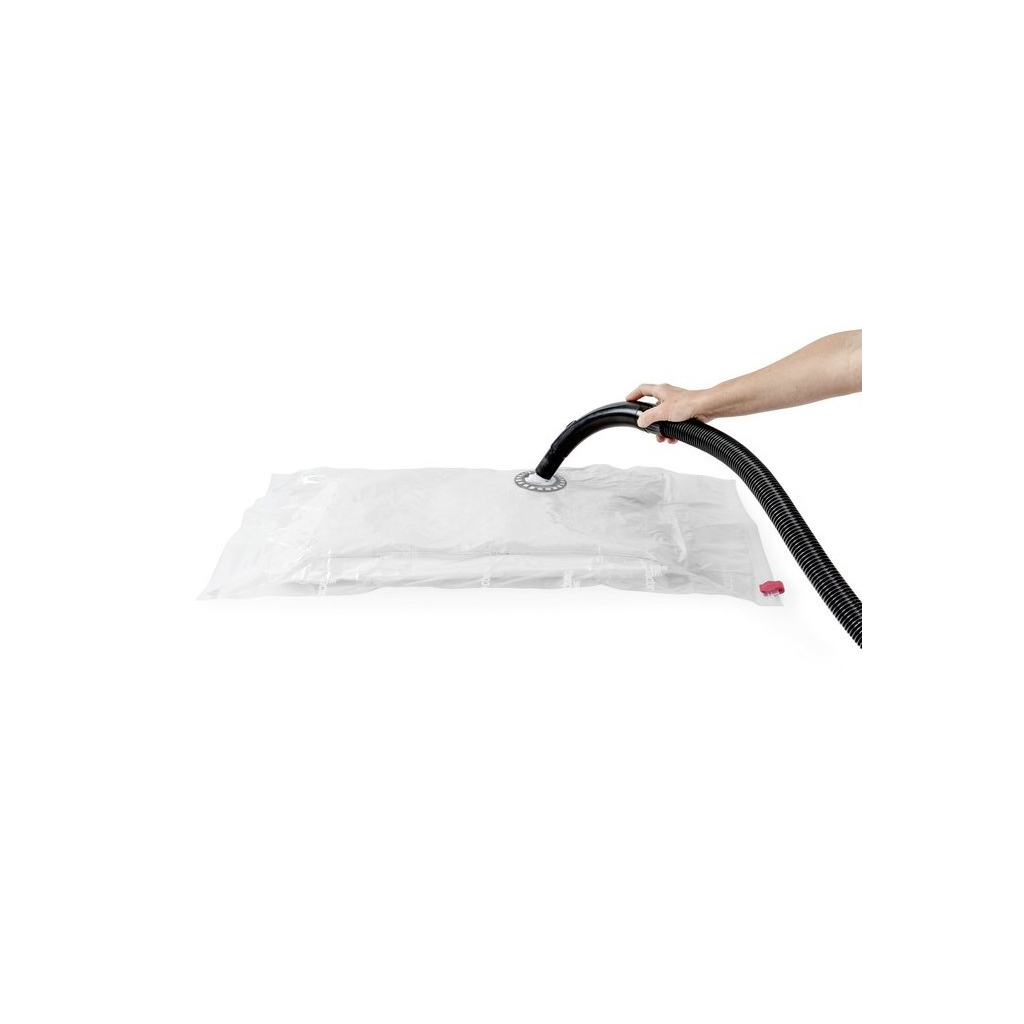 Vložený obsah odporúčame uzavrieť plastovým zipsom a prebytočný vzduch následne odsať pomocou ventilu. Ventil funguje jednocestne a je kompatibilný s klasickými domácimi vysávačmi.