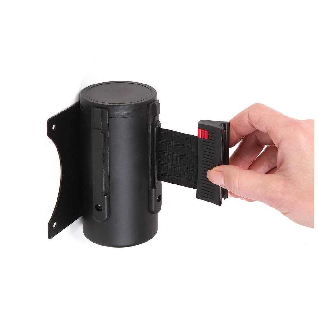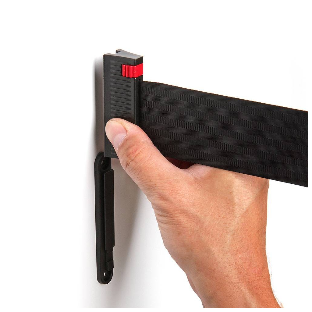 Samonavíjací pás k bariére s uchytením na stenu je ideálnym doplnkom pre vymedzenie priestoru v uzavretej miestnosti, ktorý nájde svoje využitie napríklad v múzeách, hoteloch, či na letiskách. Tento mechanizmus je tiež veľmi praktický, pretože ho stačí len priskrutkovať k stene a natiahnuť pás až do dĺžky 2 metrov. Po odopnutí pásu sa sám navinie späť.
